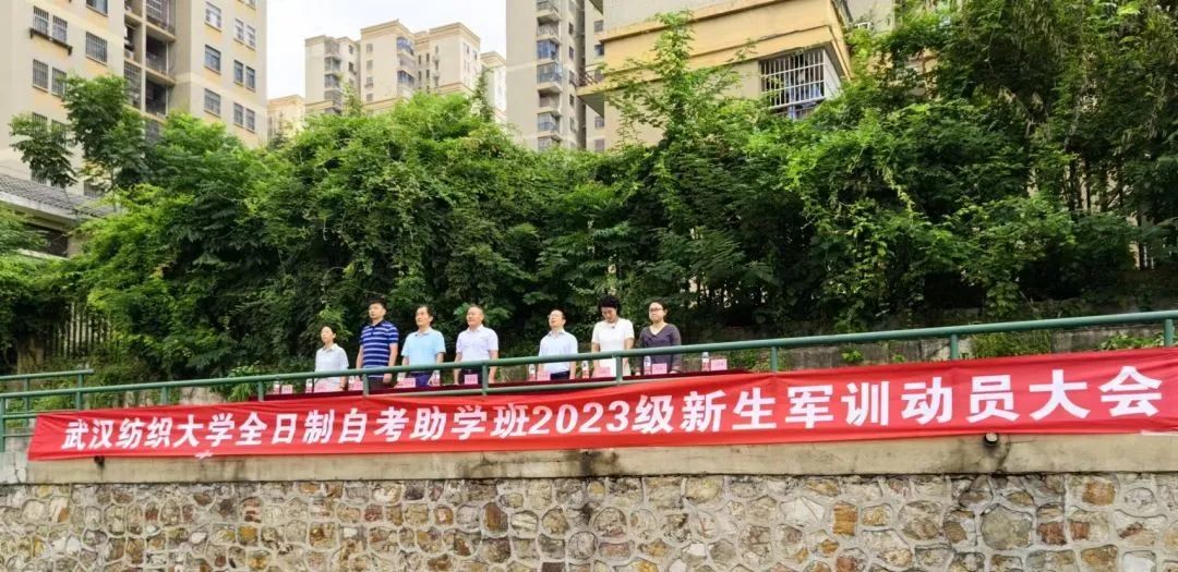 8月28日上午,我校2023级新生军训开营仪式在田径场举行。参加此次动员大会的有:武汉纺织大学继续教育学院院长潘文星、副院长刘志洲、自考办主任张娟、承训单位负责人江明福、武汉长江教育专修学院副院长兼纺大项目部部长苏以全、常务副部长陈竞、副部长兼教务办主任段晨、副部长兼学工办主任施宾、分团委书记程丽娟及各专业辅导员。