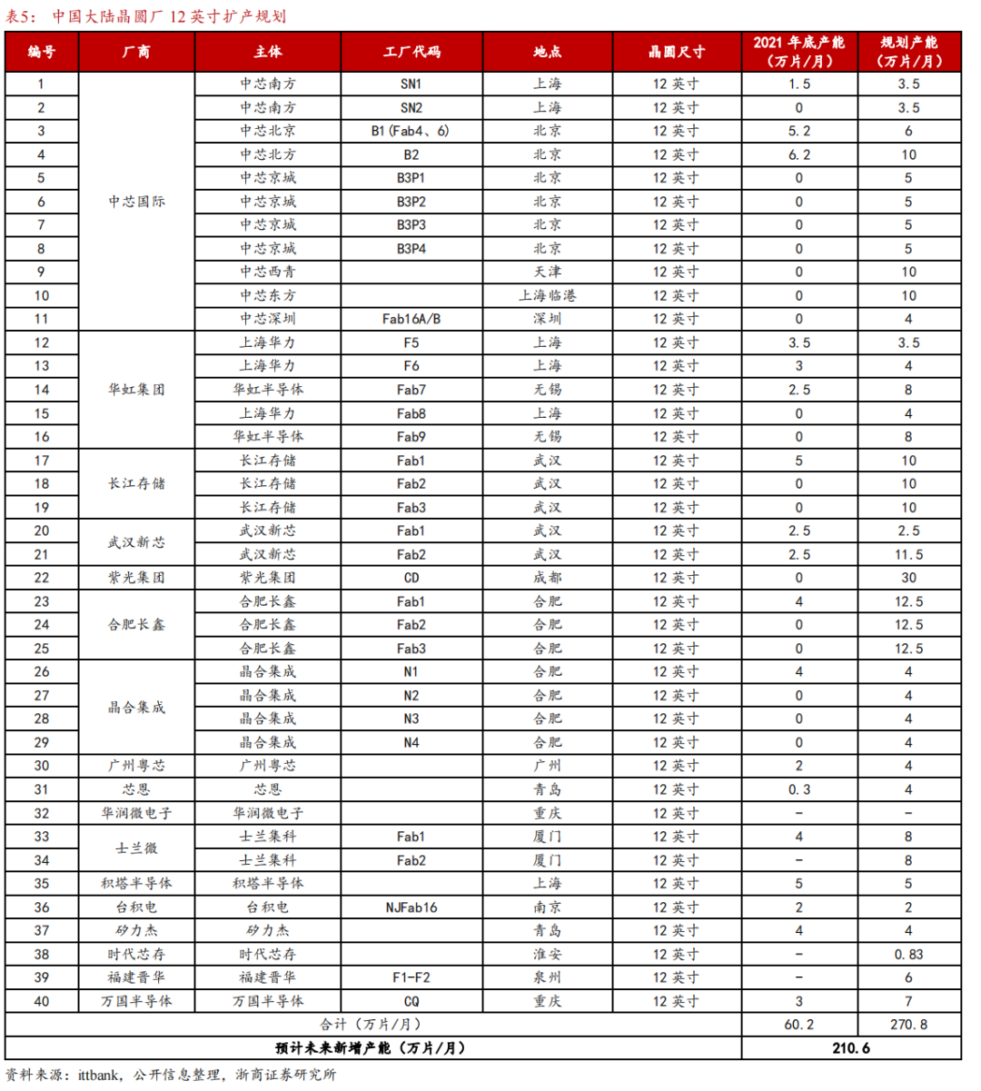下游晶圆厂产能扩张,半导体设备长期需求广阔。国内晶圆厂逆周期扩产,扩产潮持续高涨,中芯国际、长江存储、华虹集团等国内晶圆厂纷纷投资扩产。根据 SEMI的预测,到 2024年,中国12寸晶圆产能将占全球约 20%。大量晶圆厂的扩建、投产,将提升对上游半导体设备端的需求,有望为国产设备打开更大发展空间。