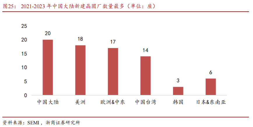 国内晶圆厂积极扩产,加快新建产能。据SEMI统计,2021-2023年全球共84座晶圆厂处于新建或规划建设状态,其中中国大陆新建及规划建设晶圆厂有20座,数量居于世界首位。