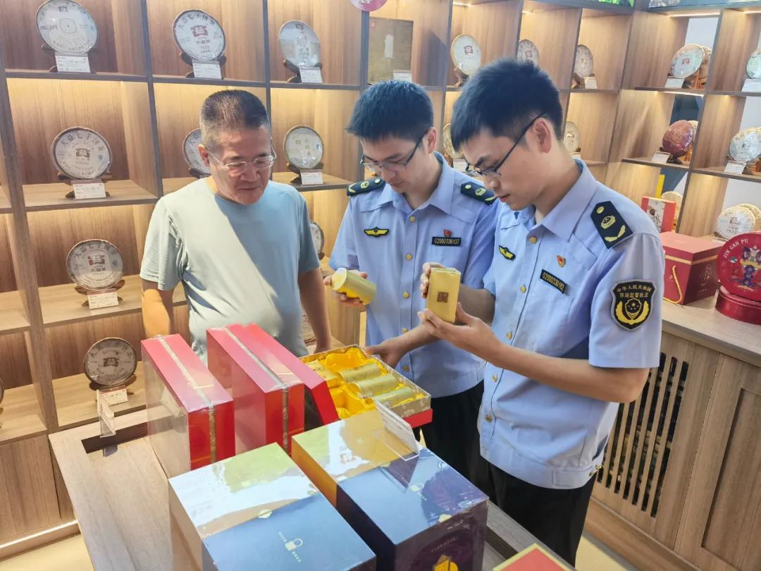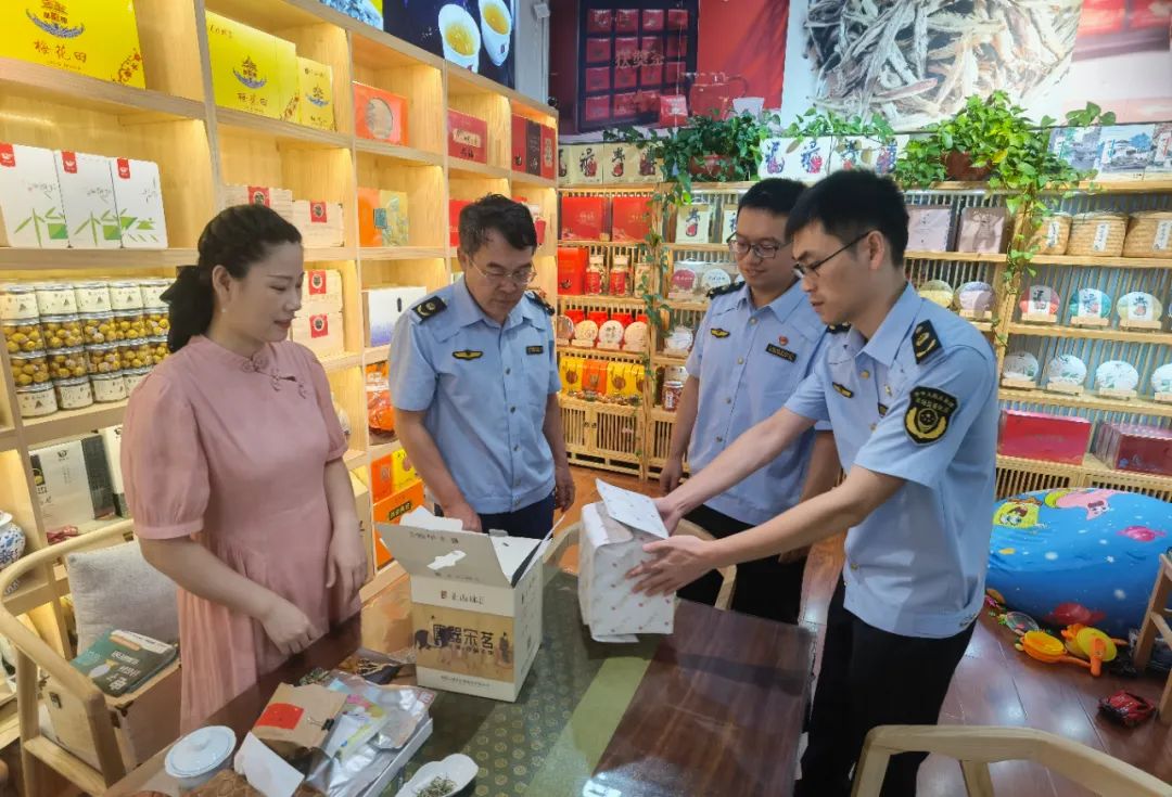 执法人员现场对经营者在售的茶叶进行检查并提醒经营者在进货时应当履行进货查验义务,杜绝购进商品出现豪华包装、包装层数过多、空隙率过大等问题。市场主办方和经营者表示会严格落实相关要求,不采购、不销售过度包装商品,主动形成绿色低碳、文明健康的经营模式,同时积极响应“倡导茶叶简约包装,推动绿色文明消费”主题倡议并签订了承诺书。
