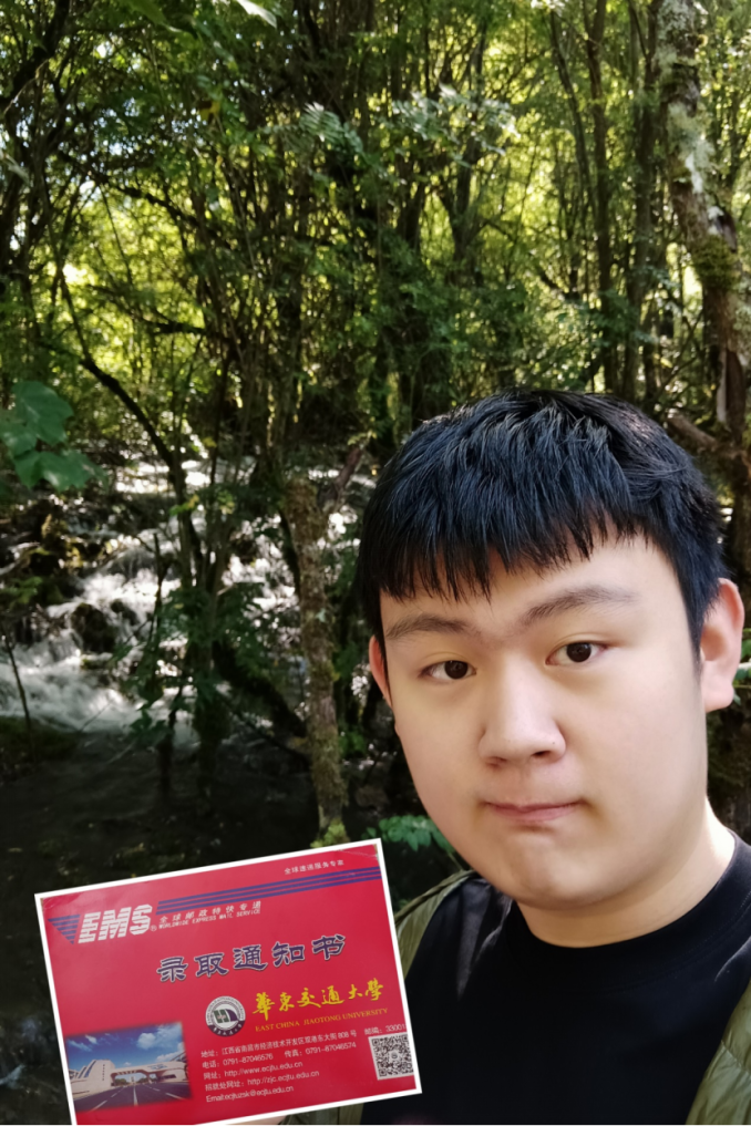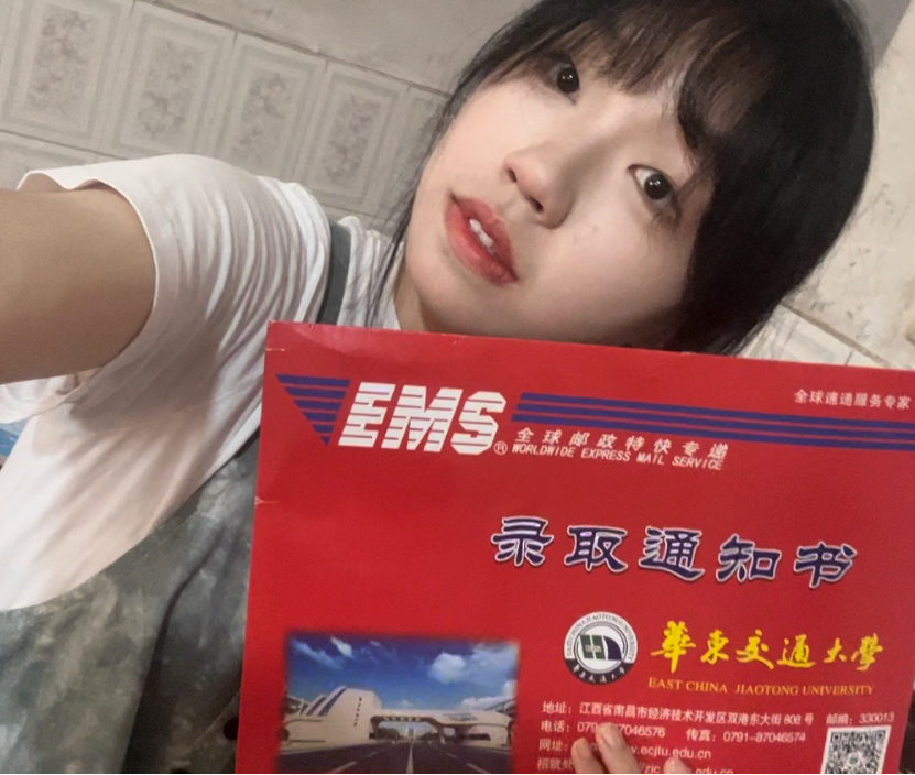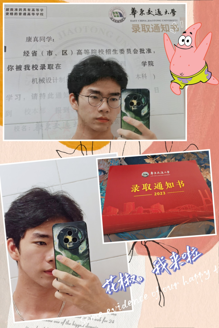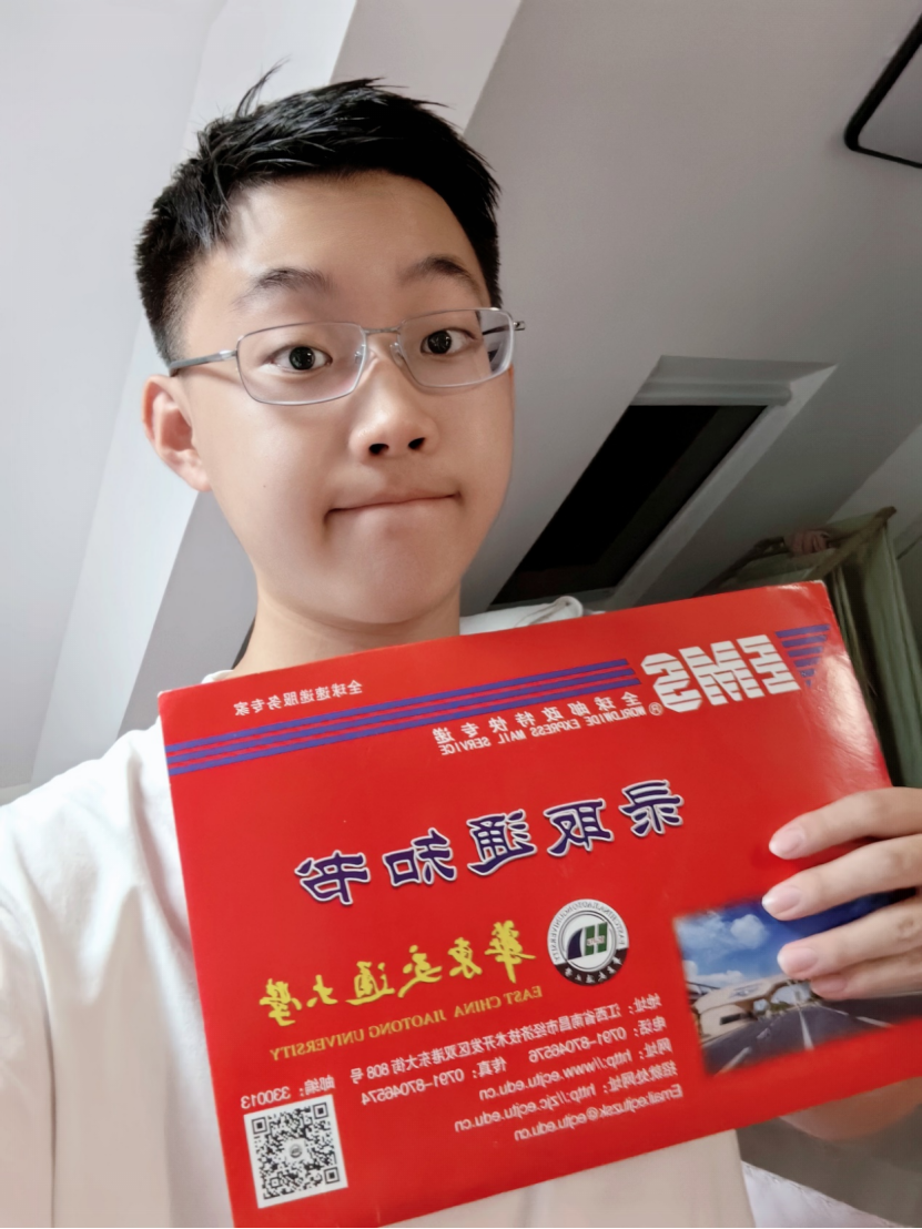 拿到录取通知书的那一刻我很激动,想想接下来的大学生活,更是让人心潮澎湃。华交,是你,让我拥有了一个更高的平台,让我站在这个平台上,又能够整装待发。希望不辜负四年的大学生活,争取成为更好的自己。