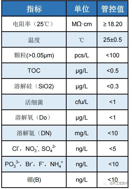 对于电阻率达18MΩ·cm的超纯水,其水质要求如下表所示