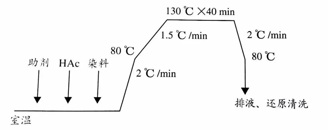 (3)由于高耐碱分散染料比常规分散染料粘性大,所以化料时,要先将分散剂化好,然后加入化料缸,同分散染料一起搅拌均匀,再打入染缸内。必要时,要进行过滤网过滤,再打入染缸。加入染料后,要先运行10min,然后按照程序缓慢升温染色。