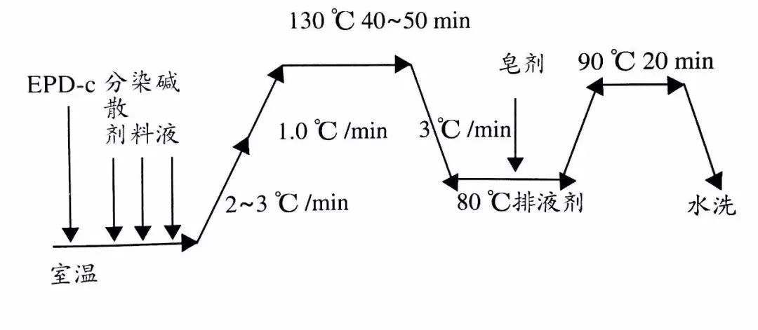 高耐碱分散染料用量X,30%NaOH7.0g/L,碱性分散剂FA1.0g/L,去油精练剂EPD-C1.0g/L,谷比1:10~1:15,温度130C°,时间40~50min。