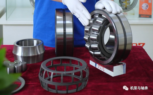 E型轴承:两片式冲压钢保持架通过浮动导环形成外圈引导;SKF型号:22322 EJA/VA405;FAG型号:22332-E1-JPA-T41A