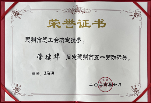 8月30日上午,平原县2022年度“德州市五一劳动标兵(单位)”授牌仪式在平原县总工会召开。平原恒丰纺织总经理管建华喜获“德州市五一劳动标兵”荣誉称号。
