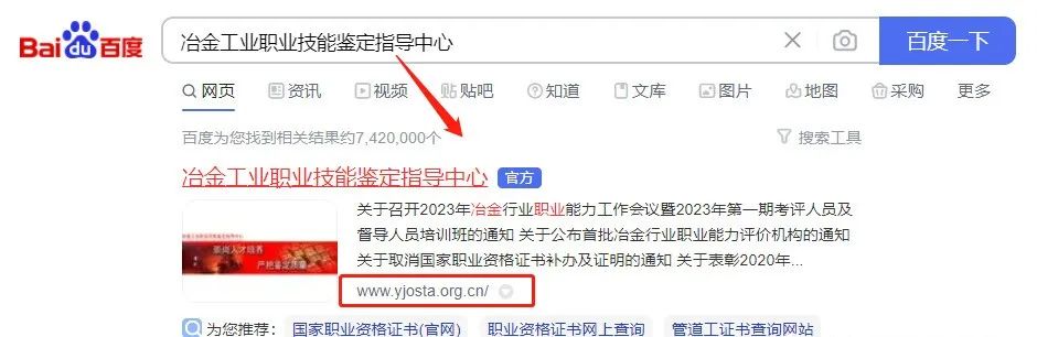 经百度搜索“冶金工业职业技能鉴定指导中心”的官网为http://www.yjosta.org.cn
