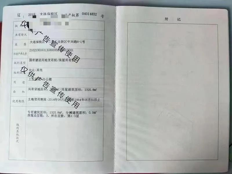 转让项目位于大连保税区十三里工业新区。转让项目土地占地面积为7198平方米,土地使用期限:2014年6月1日至2064年5月31日止,土地用途为工业用地,房屋总建筑面积为8508平方米。转让项目包括三层办公楼,总建筑面积为1325.8平方米。转让项目包括两层厂房,其中,第一层层高7米,第二层层高6米,总建筑面积为5778.7平方米。转让项目包括三层综合服务楼,内设员工食堂,宿舍,小型厂房,总建筑面积1403.58平方米。