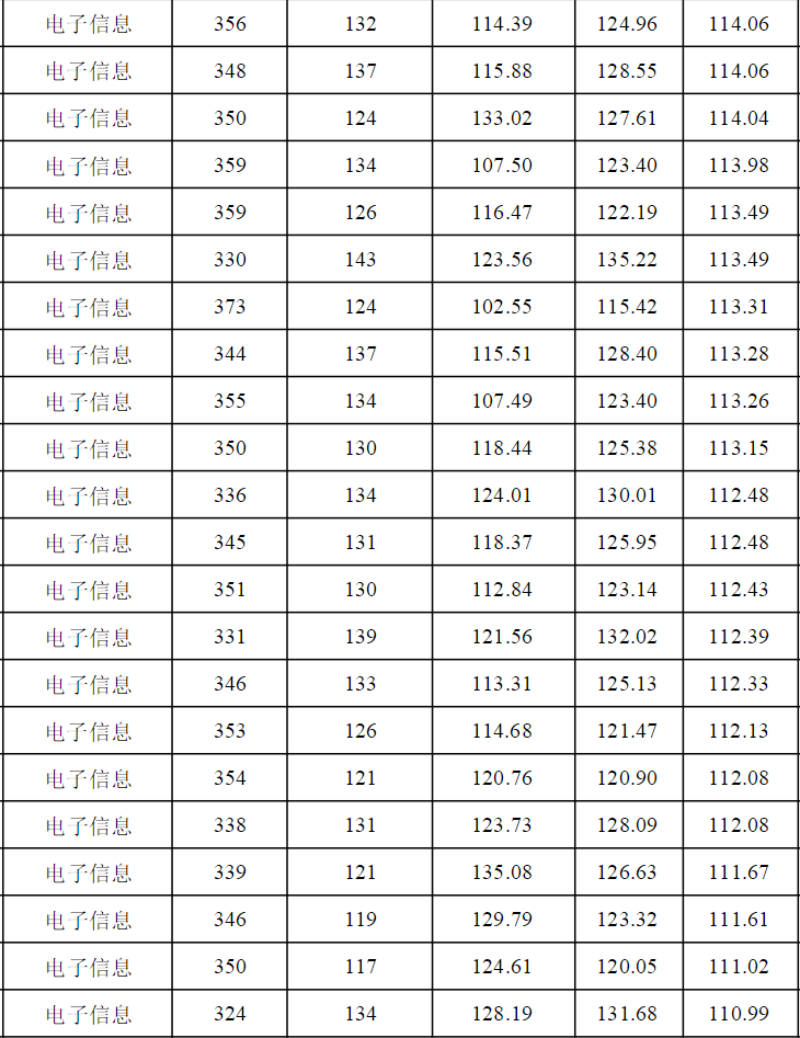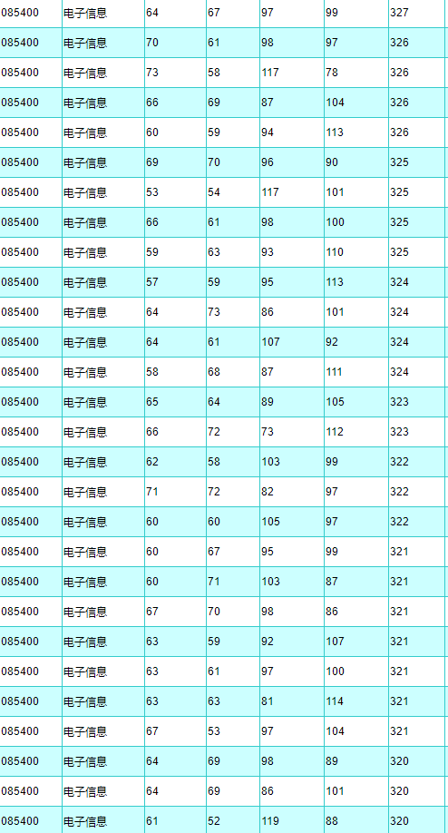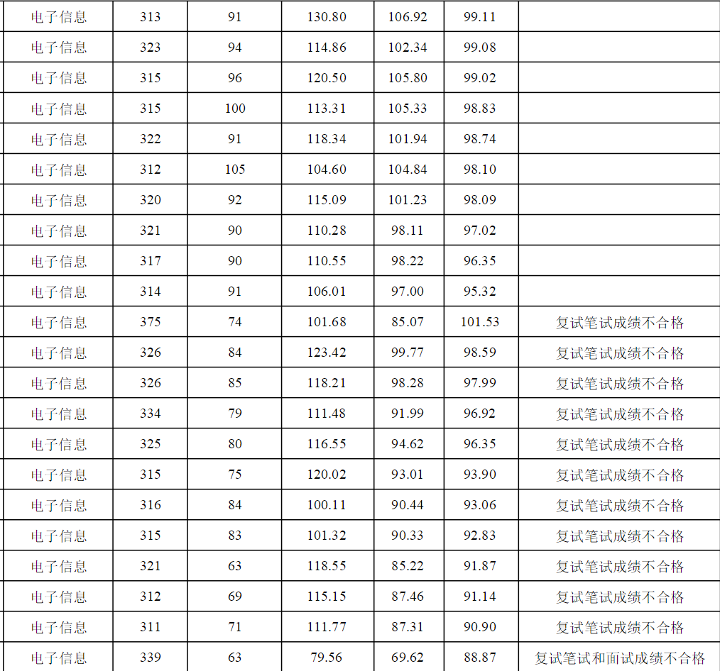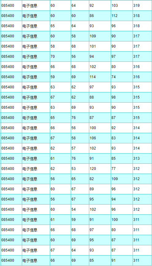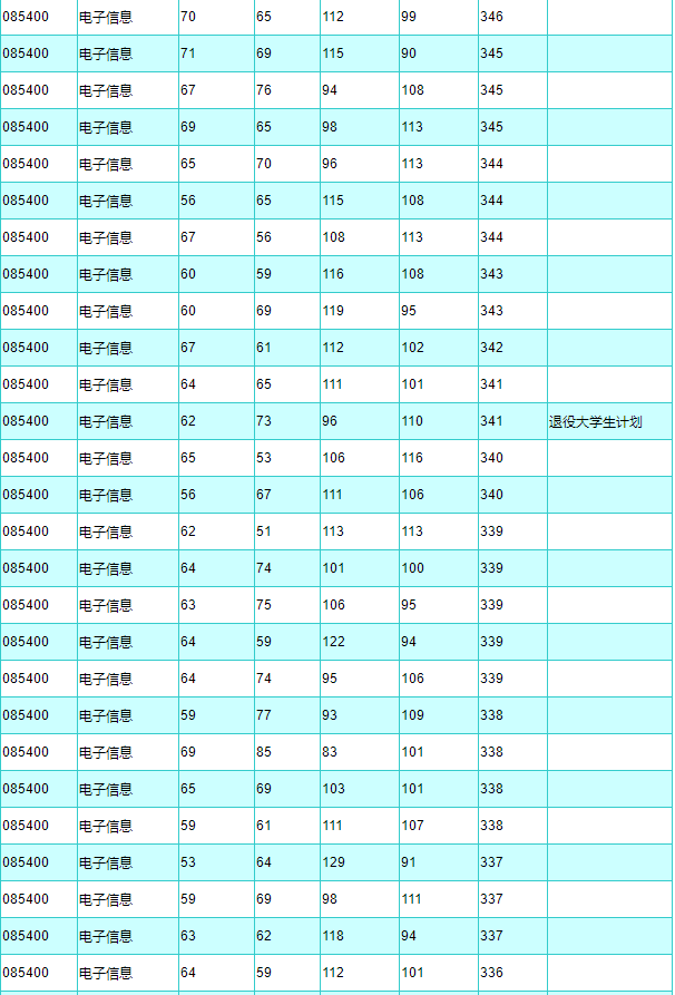电子信息,进复试163人(其中士兵计划1人)。初试各分数段: