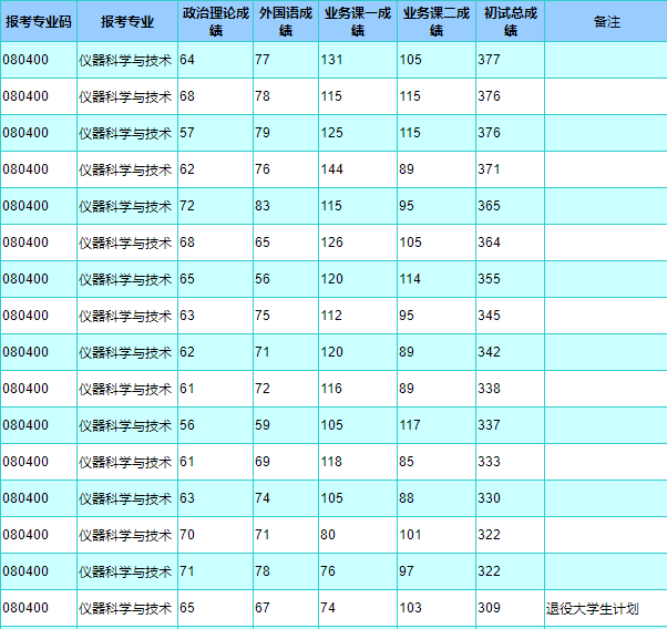仪器科学与技术,进复试16人(其中士兵计划1人)。初试各分数段: