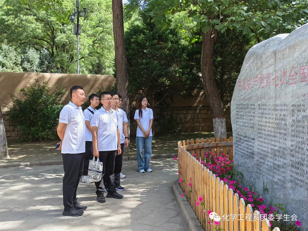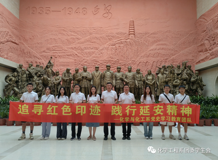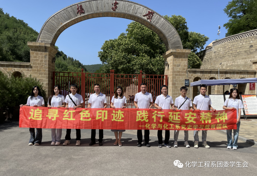 习近平总书记在党的二十大闭幕后瞻仰延安革命纪念地时指出,“在延安时期形成和发扬的光荣传统和优良作风,培育形成的以坚定正确的政治方向、解放思想实事求是的思想路线、全心全意为人民服务的根本宗旨、自力更生艰苦奋斗的创业精神为主要内容的延安精神,是党的宝贵精神财富,要代代传承下去。”在向全面建成社会主义现代化强国进军的新征程中,为教育引导文理青年全面深刻理解把握延安精神的丰富内涵,继承光荣传统、矢志团结奋斗。7月20日,化学与化工系暑期“三下乡”社会实践团队前往革命圣地延安开展“寻红色记忆,筑青春之梦”社会实践活动。