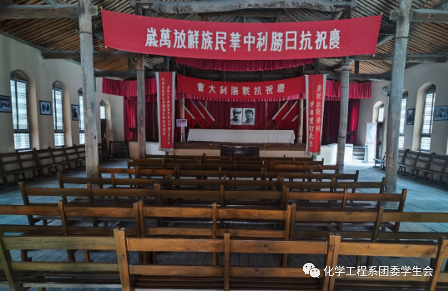实践队进入王家坪革命旧址,映入眼帘的就是中央军委大礼堂,这是七间高大宽敞、四角翘起的大瓦房,可容纳近千人,在这里,军委和总部领导军民坚持十四年抗战,取得了抗日战争的伟大胜利,又粉碎了国民党军队对解放区的全面进攻,并为战胜其重点进攻作了充分准备。