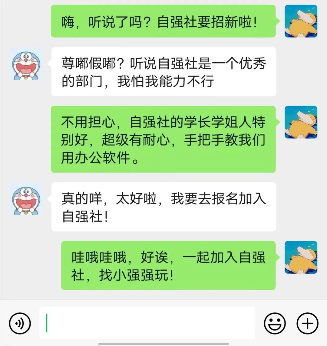 欢迎宝子们加入自强社,小强强将陪伴大家在未来美好的大学生活里一起成长,遇见更好的自己!