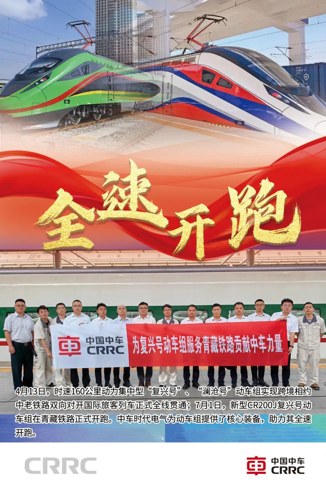 把握国铁机车装备由“和谐”加速向“复兴”升级的历史契机,中车时代电气积极配合各主机厂开展全谱系“复兴号”机车技术迭代升级和应用工作,完成样机装车,深度参与CR450新型动车组研制,助力中国铁路核心装备实现自主可控、安全智能、绿色节能。