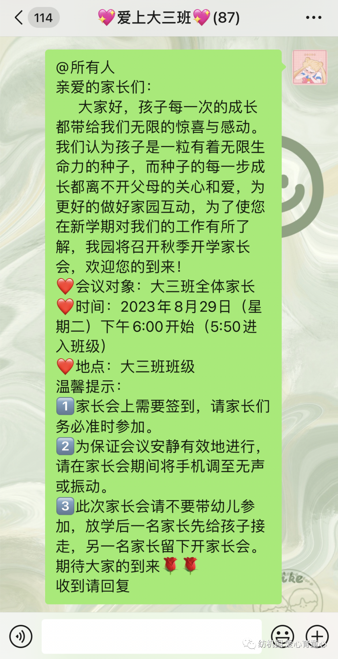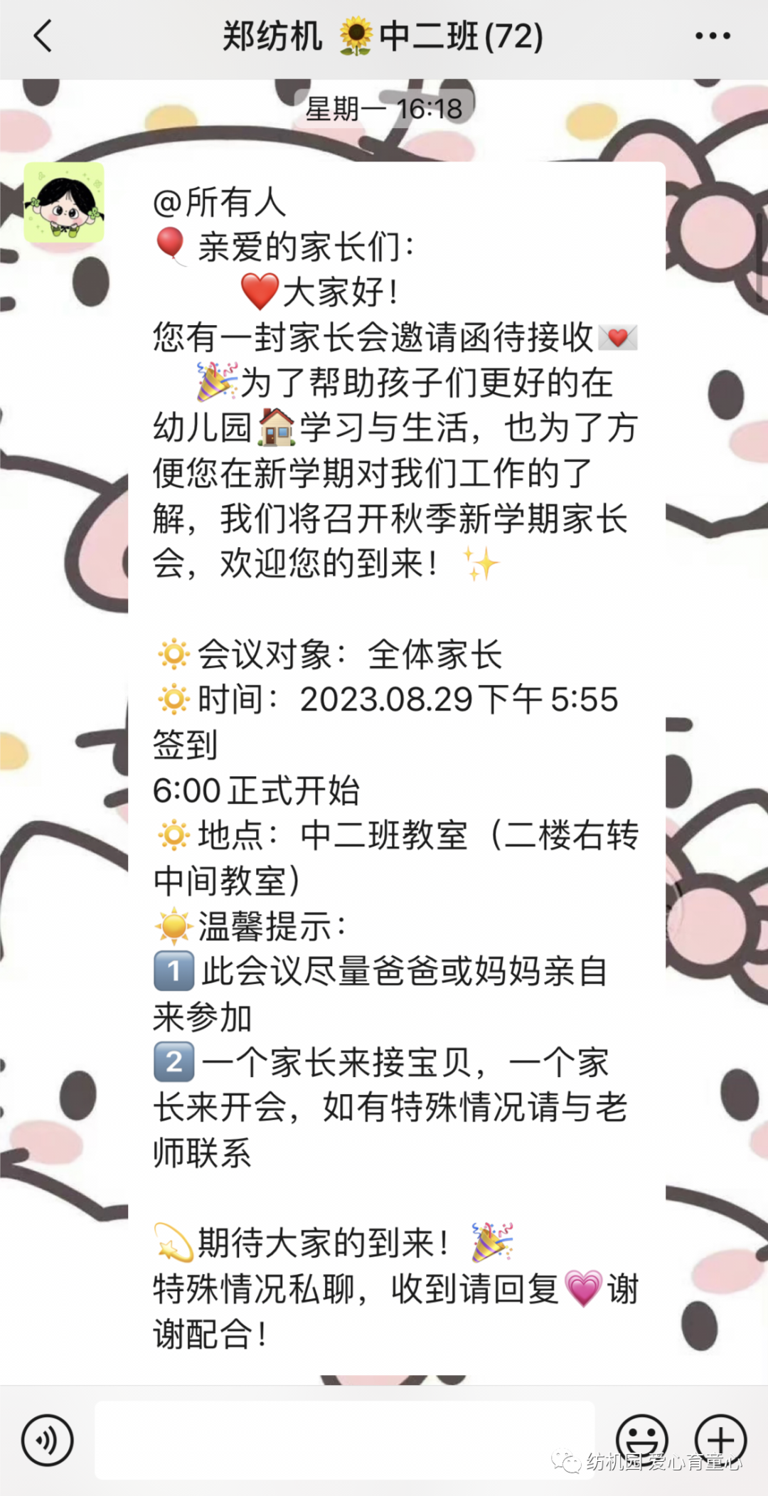 金秋如约而至,成长不期而遇。为了进一步加强幼儿园与家庭、教师与家长的密切联系,增进家长对幼儿园工作的了解,帮助家长梳理正确的育儿观,提高教育合力,国营郑州纺织机械厂幼儿园于2023年8月29日召开了中大班新学期家长会。