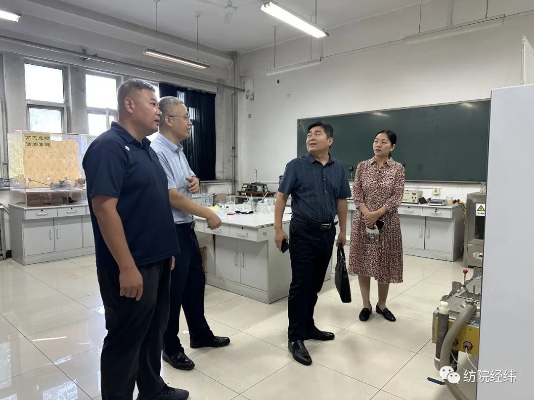 随后一行人参观了学院纺织新产品开发小试制样快速反应系统、纺织材料及纺织品性能测试实验室,以及依托河北省纺织服装技术创新中心建设的纺织中试生产基地,对学院软硬件设施配套及教学、科研水平给予了充分肯定。
