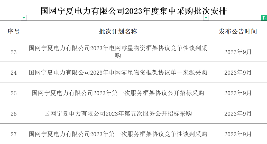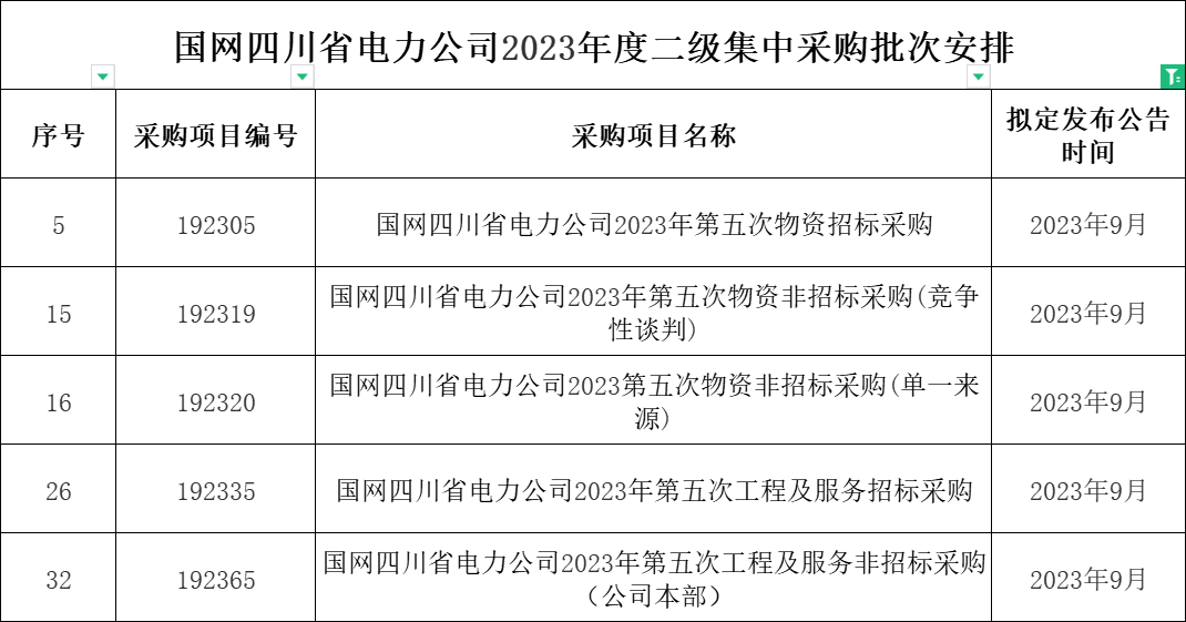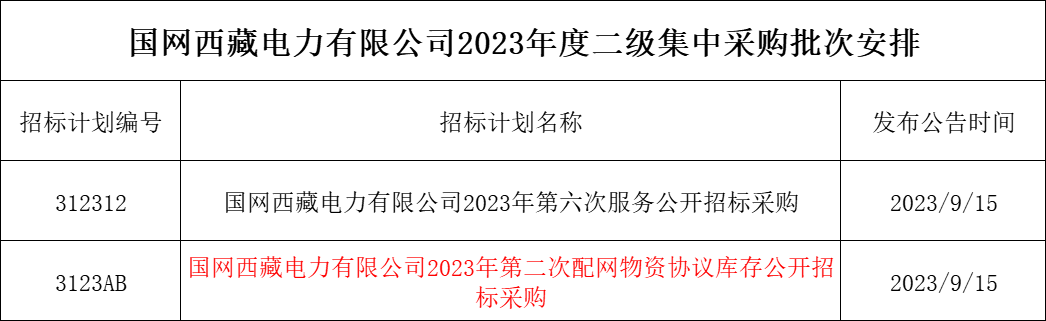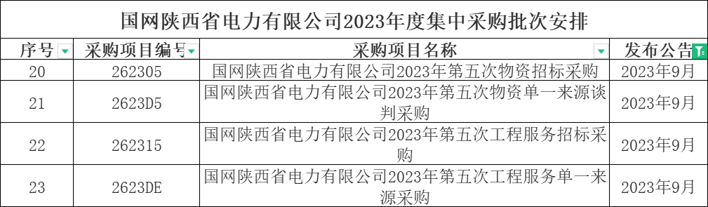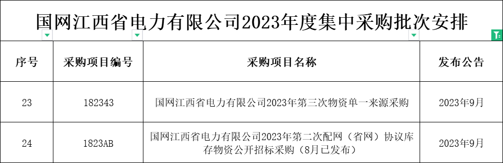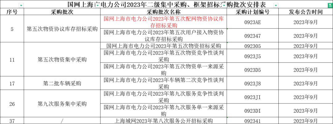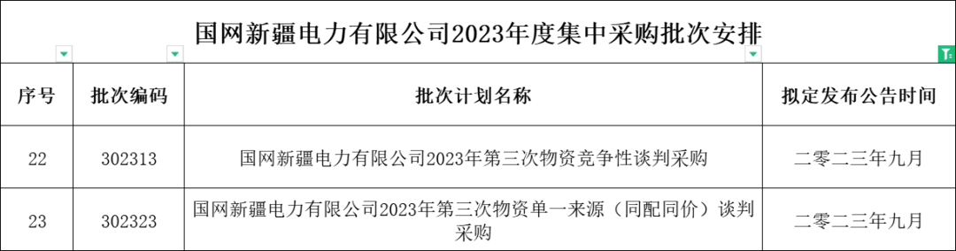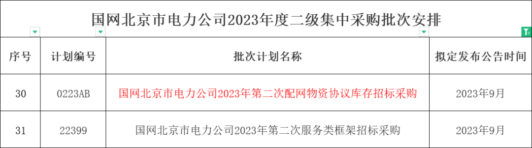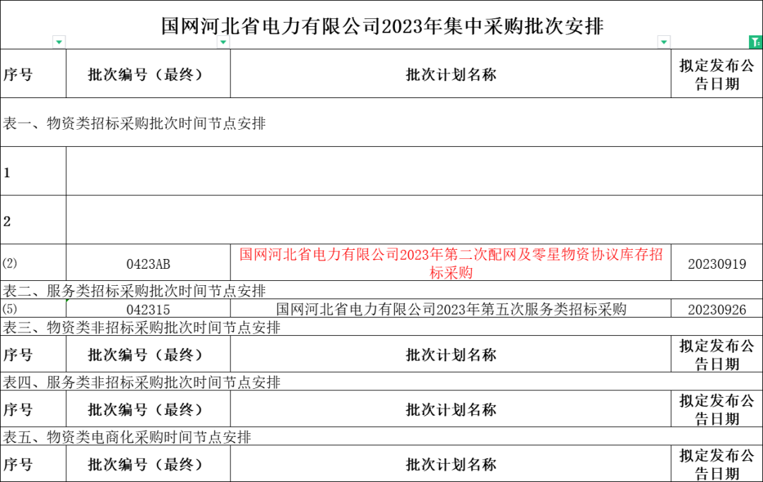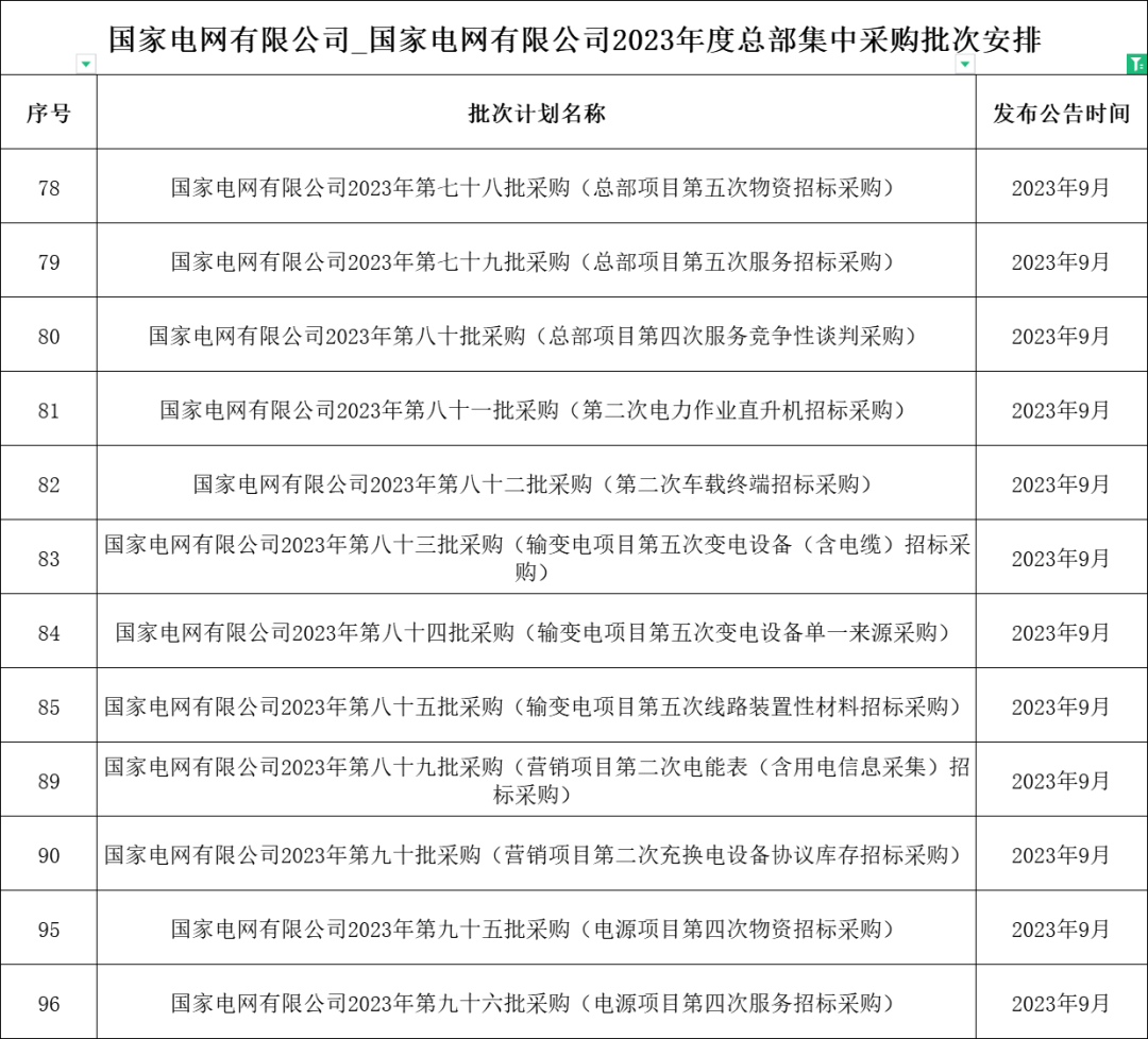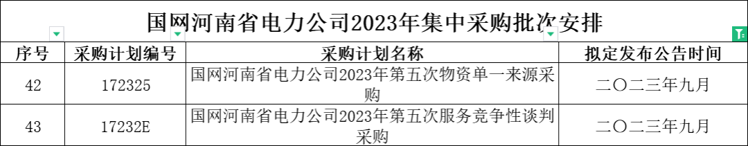 1、国网河南省电力公司2023年9月份集中采购批次安排