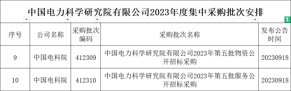 25、中国电力科学研究院有限公司2023年9月份集中招标采购批次计划【声明】数据以国家电网电子商务平台官方发布的为准。本文仅做信息分享,如有侵权请告知删除。
