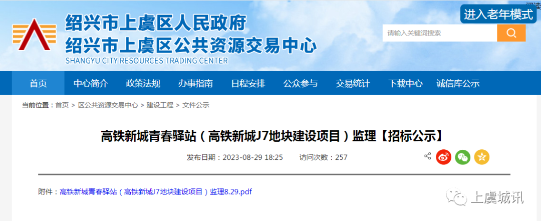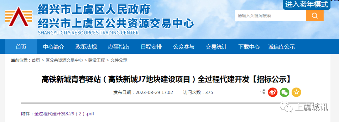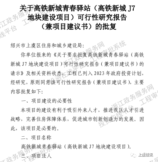 近期,上虞区公共资源交易中心公开发布了高铁新城青春驿站(高铁新城J7地块建设项目)全过程代建开发以及监理招标文件内容的公示,意味着该项目将以代建的形式进行建设,跟城东的定向房春辰嘉园、曹村的皂湖佳园、原西站的皂李湖定向房建设地块一样,都是通过代建的形式,把它建造起来。