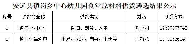 安远县镇岗乡中心幼儿园食堂食品原材料