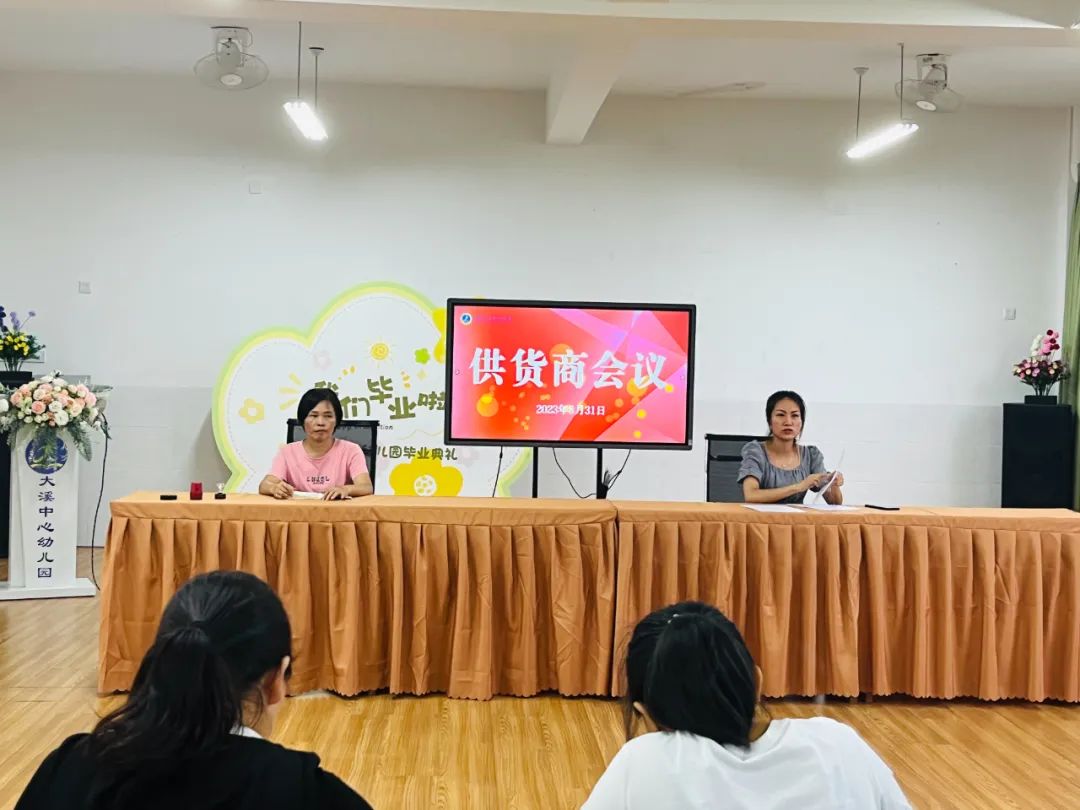 为切实把好幼儿园食品安全关,认真做好食品安全工作,提高食堂供货商的安全和责任意识,2023年8月31日下午,大溪中心幼儿园召开新学年食堂供货商会议,会议由保卫科长郑老师主持。