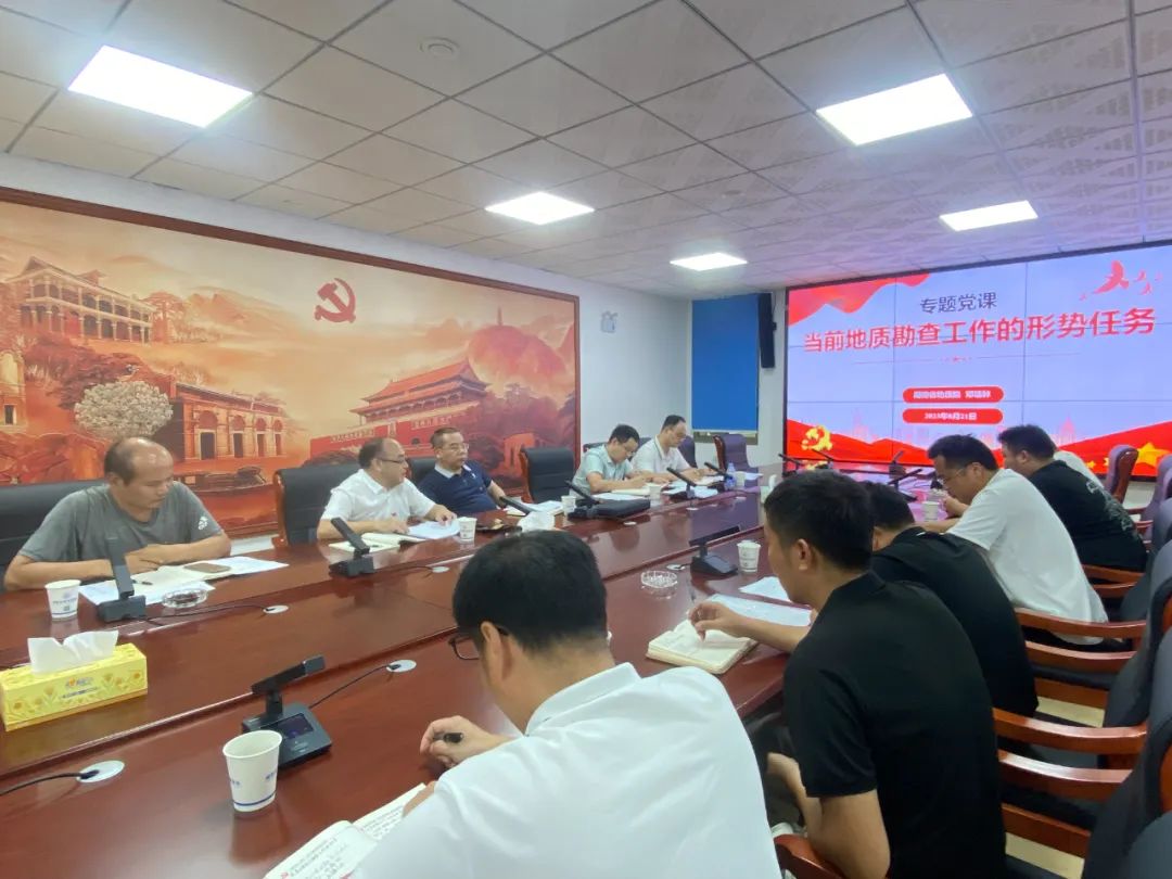 邓瑞林同志就深入学习习近平新时代中国特色社会主义思想,结合学习领会谈文胜书记 “保障能源资源安全、彰显湖南地质力量”主题教育专题党课精神,讲授题为《当前地质勘查工作的形势任务》专题党课。他认为,新时代地勘工作使命光荣、责任重大,新一轮找矿行动目标宏大、任务艰巨。他希望,矿产中心党支部深入开展主题教育学习,强信念、强担当、强本领、强实干、强党性、强斗争,勇当地勘先锋、牢筑找矿保垒、永扬地质精神,以找好矿、找大矿、找富矿的优异成绩谱写地质向党、地质报国、地质为民的时代新篇。