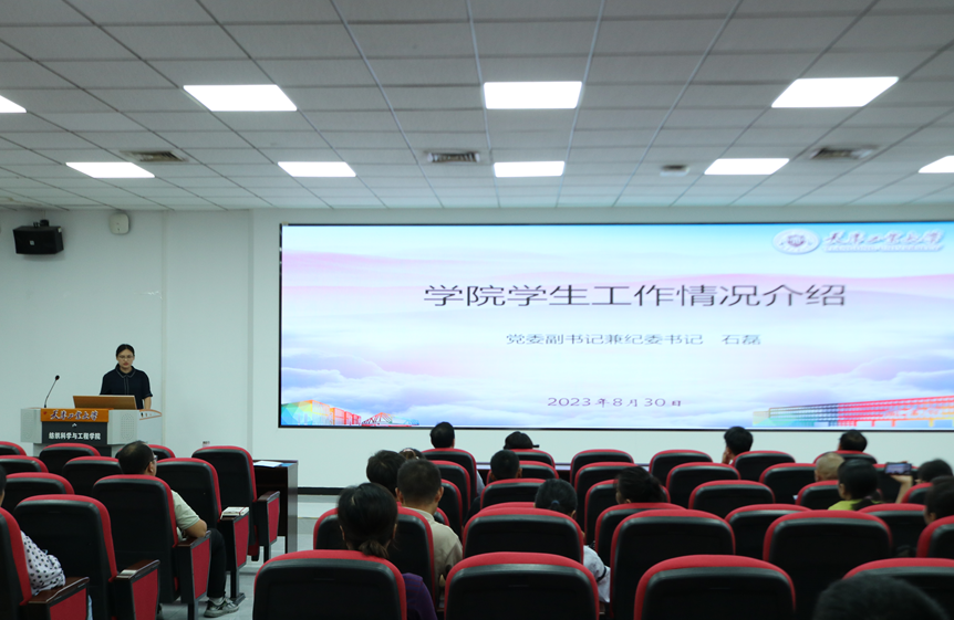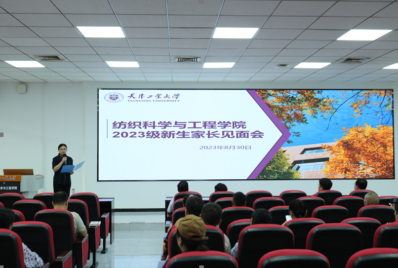 为进一步加强家校协同育人,提升育人实效,搭建坚实有效的家校交流平台。2023年8月30日18:00,纺织科学与工程学院于学院E112召开2023级新生家长会。学院党委书记胡艳丽,常务副院长刘雍,党委副书记石磊,副院长夏川、巩继贤出席会议,学院辅导员、2023级新生班导师以及100余名新生家长参加会议。会议由党委副书记石磊主持。