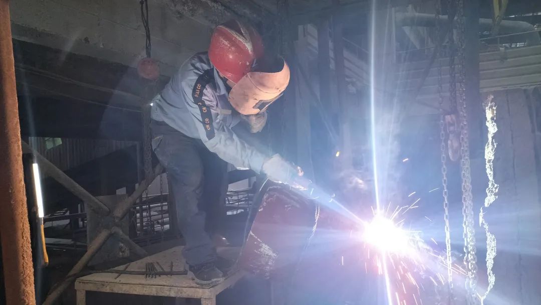 管工作必须管安全,在磨机厂房内依然潮湿闷热,但是安全、防暑降温工作不容松懈,作业现场医药箱和矿泉水等物品准备充足,同时配置2名专职人员全程监督管理,切实保障着职工生命健康权益。8月25日,磨机衬板安装接近了尾声,为了尽快投入生产,两个作业小组又马不停蹄的开展着球磨入磨管更换、中间泵变径管更换以及矿石仓挖补等检修任务,1组磨系统大修正紧张有序推进中。