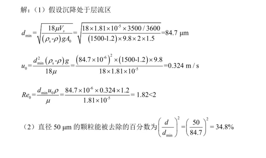(2)50 μm的尘粒能被除去的百分数(假设进气中不同粒径的尘粒沿高度均匀分布)。