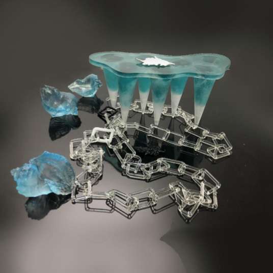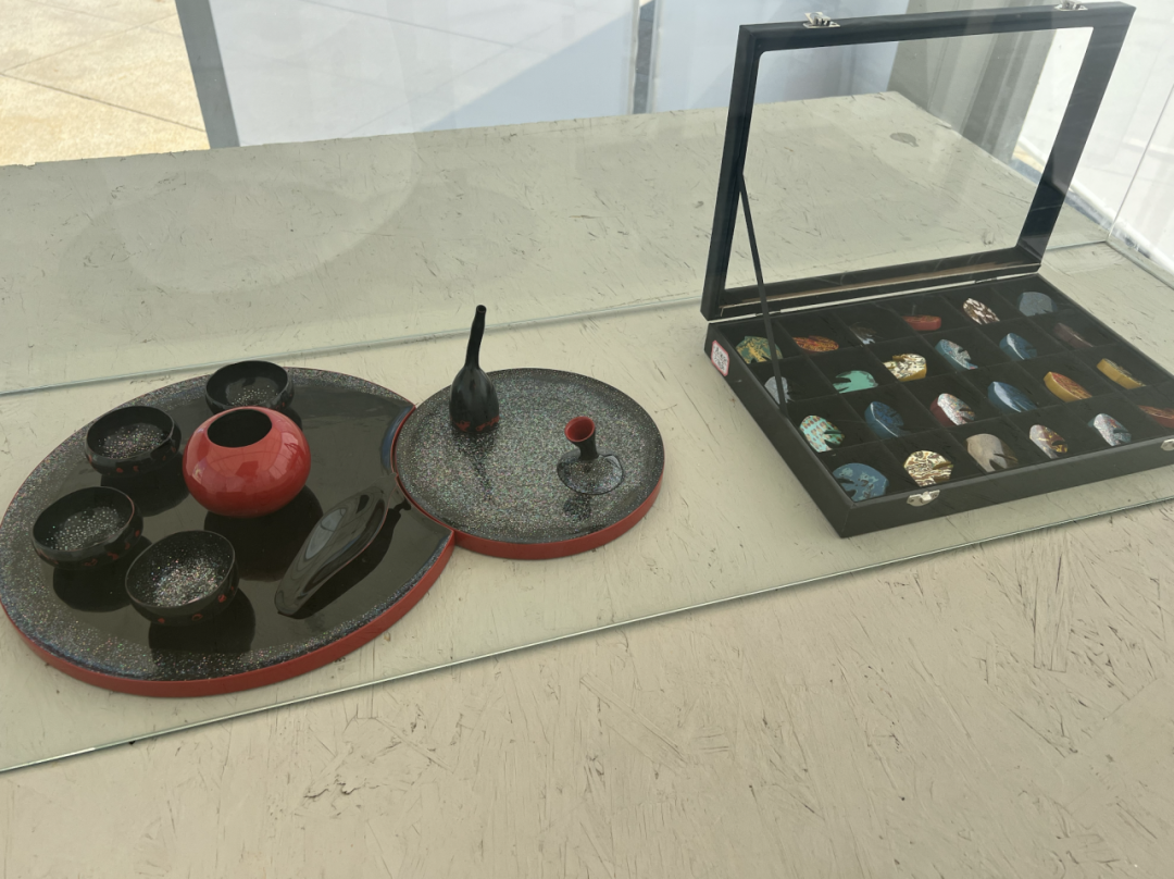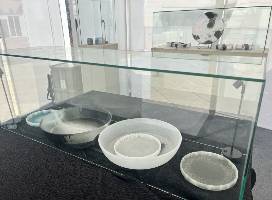 展区的大部分作品都采用了传统的脱蜡铸造法,即古法琉璃的制作工艺,手作之美的痕迹无处不在。不同物理状态的琉璃料在高温下融化流淌,看似自由,又在设计之中,看似严密的设计却也无法完全左右色彩的流向。琉璃器的审美属性与工艺属性相互渗透,展示出其材质的不可替代性,每一个都是那么的独一无二。