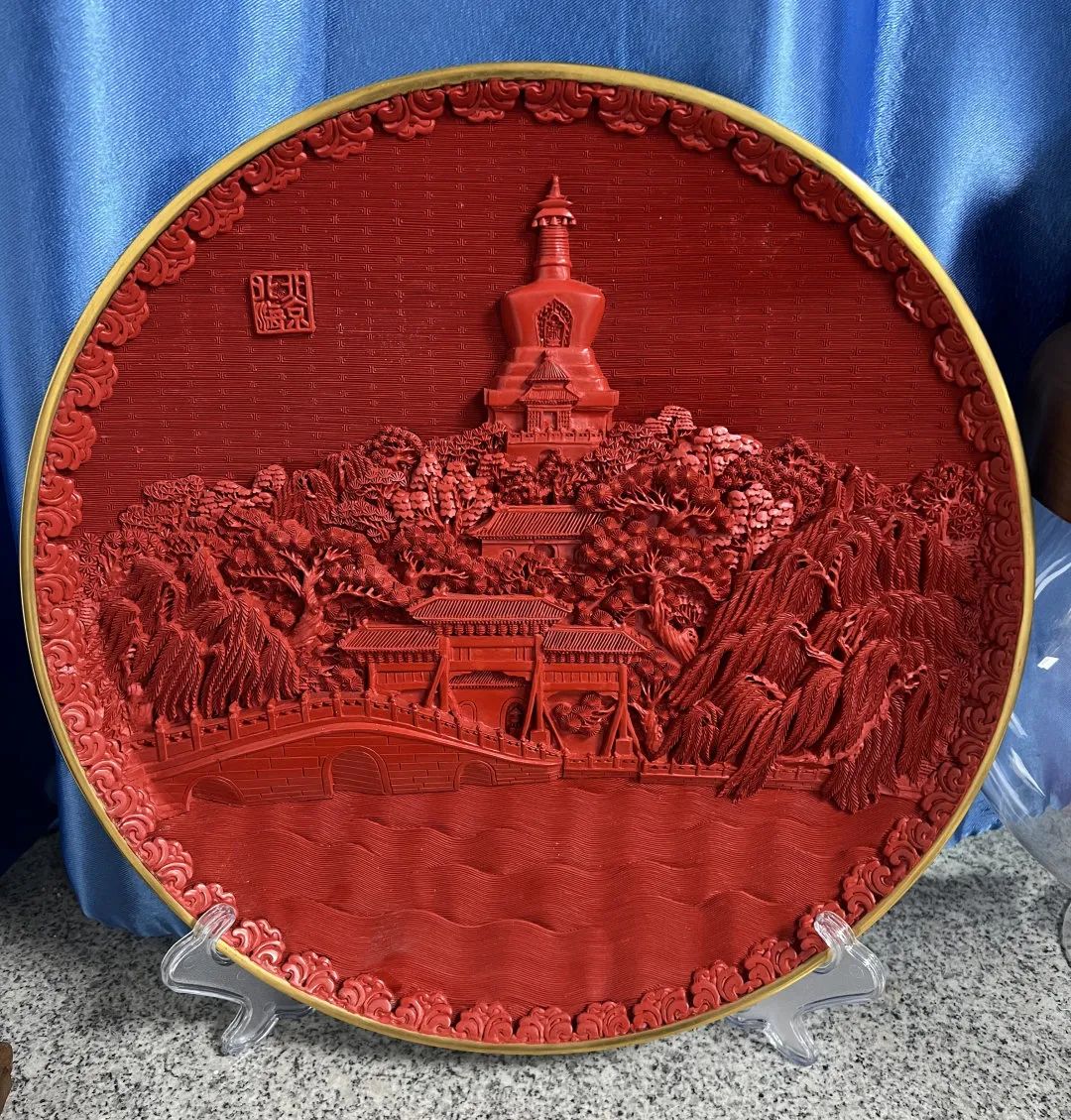 雕漆技艺是将天然漆料在胎上涂抹到一定厚度,用刀在平面漆胎上雕刻各式线条花纹形状的技法。雕漆工艺过程十分复杂,要经过设计、制胎、涂漆、描样、雕刻(雕刻分为上手和下手,上手刀法主要分为剌、起、铲、片、勾,下手指雕漆锦文的雕刻环节)、磨光等十几道工序。雕漆作品造型古朴庄重,纹饰精美考究,色泽光润,形制典雅,具有防潮、抗热、耐酸碱、不变质等特点,也以其精致富丽的面貌呈现出中国文化的丰富内涵。
