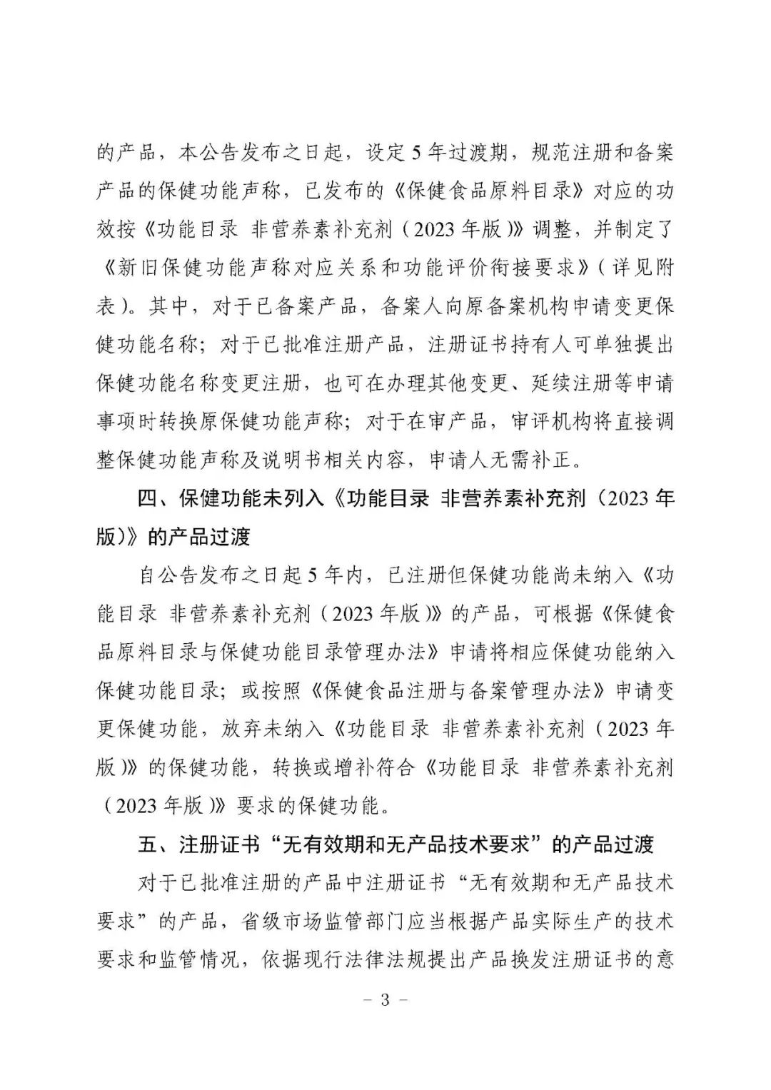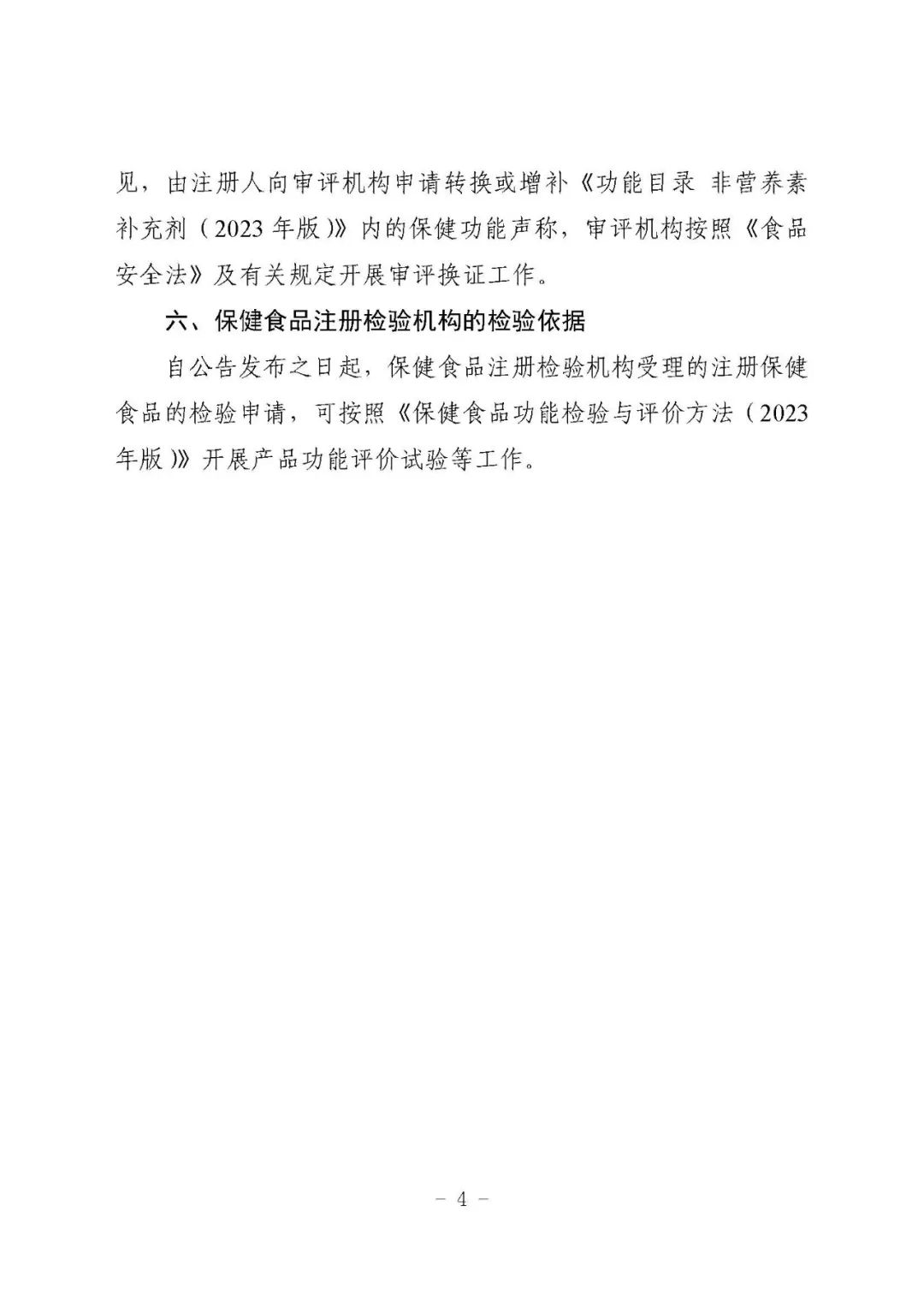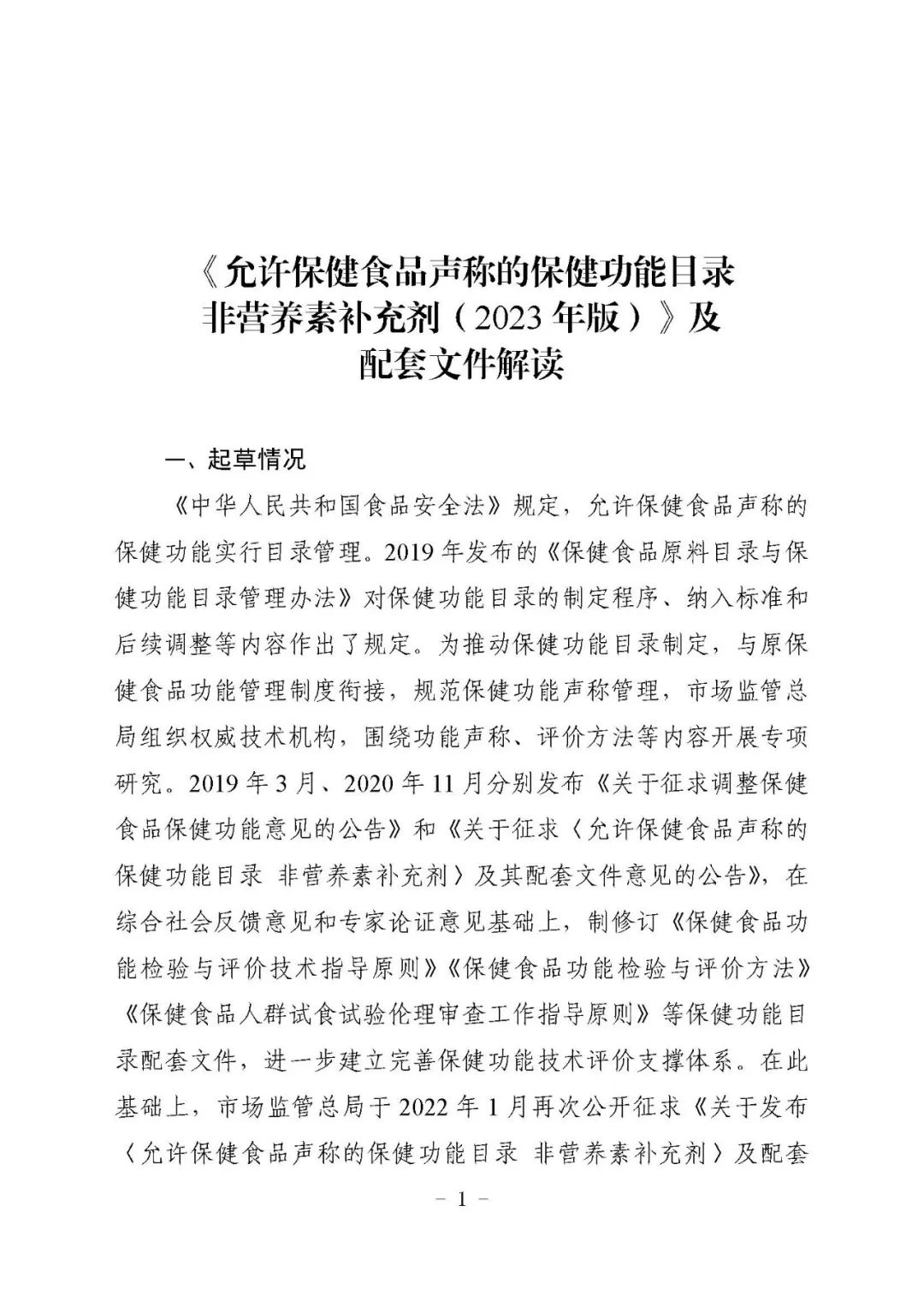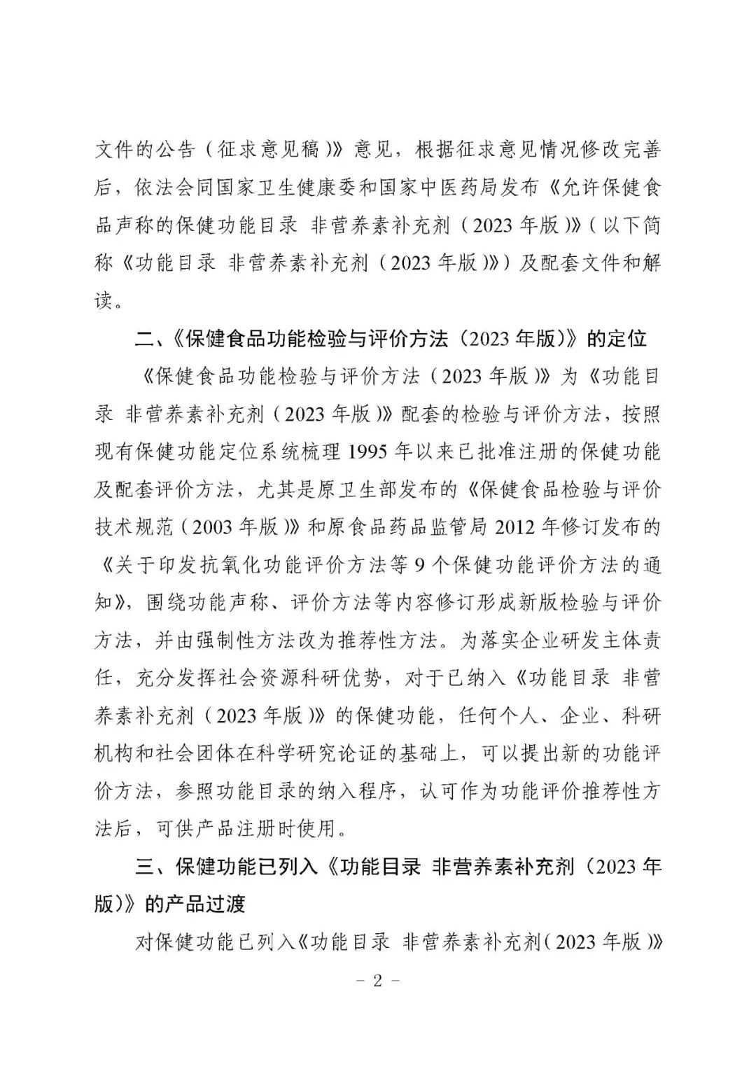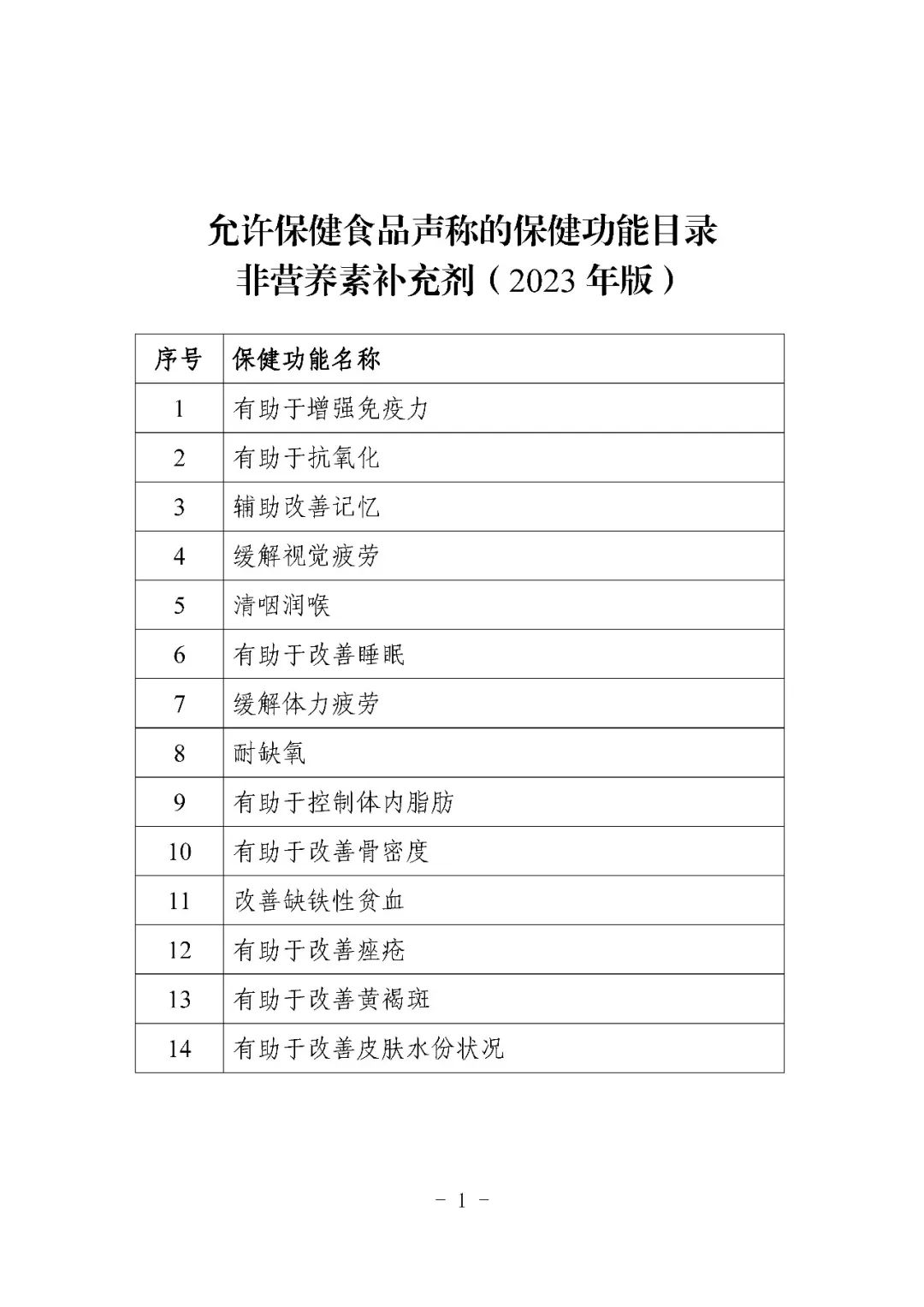 关于发布《允许保健食品声称的保健功能目录 非营养素补充剂(2023年版)》及配套文件的公告