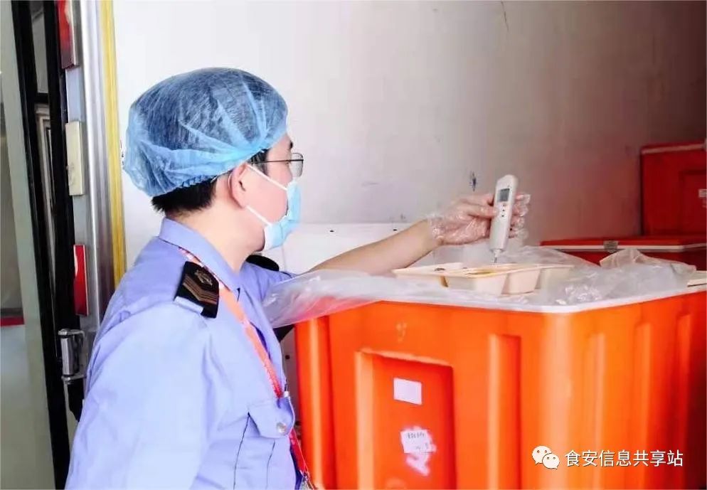 第三,抽查盒饭内菜肴,加热保温盒饭的中心温度保持在≥60 ℃。