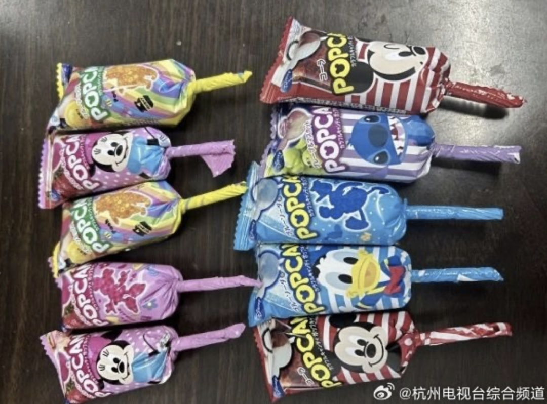 名为“POPCAN”的日本进口棒棒糖,食品标签信息显示生产产地为“日本埼玉县”。