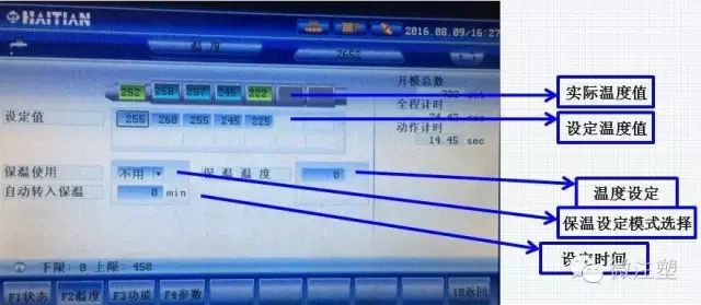 保温设定:比如POM,PC ABS等材料,炮筒内长时间停留会导致材料分解,设定保温温度后可以使炮筒的温度暂时保持在保温设定值,防止材料的分解等;