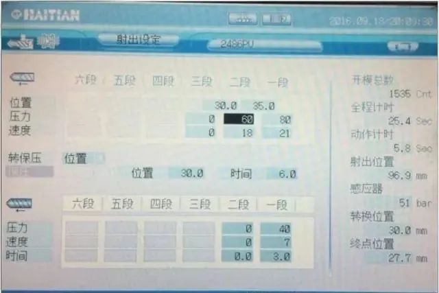 当通过位置来设定转保压点时,设定的转保压时间需大于实际注射的时间3-5S。