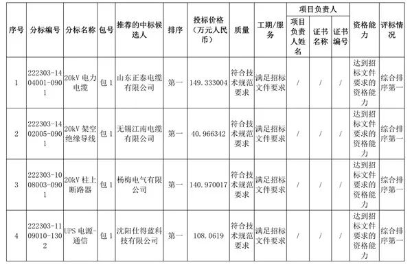 推荐的中标候选人公示