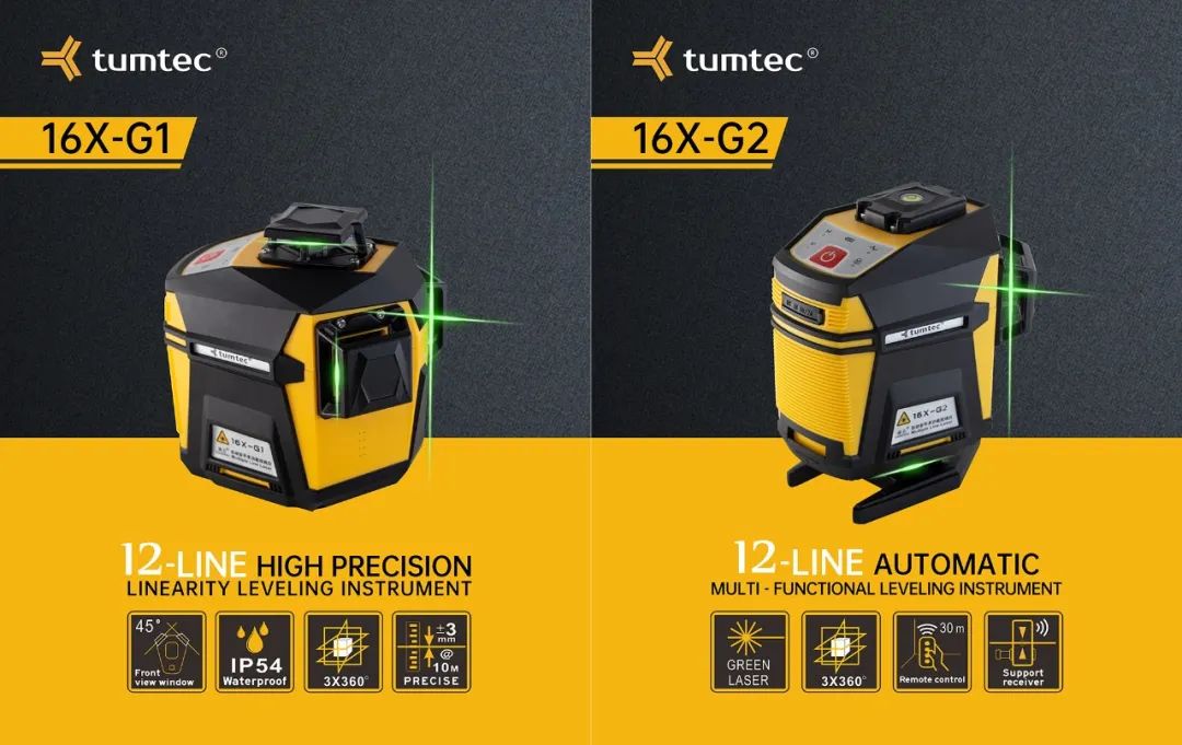绿光12线水平仪采用德国欧司朗OSRAM激光光源,45°激光窗口,精准轻松打线。3x360°的激光线可适用于复杂环境,让用户实现高效安心作业。一体化设计,软胶耐冲击无惧跌落,IP54防水防尘。