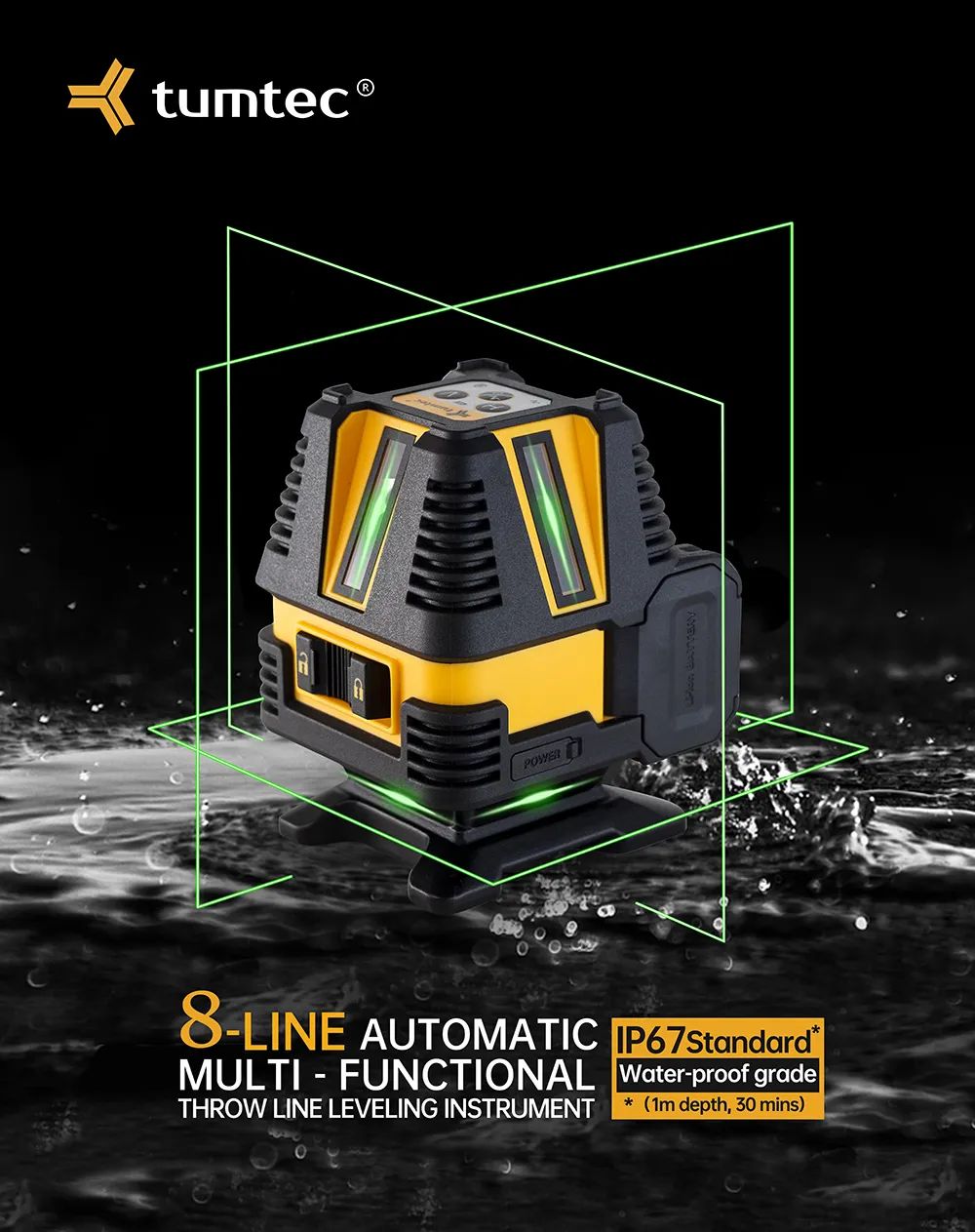 展会现场,藤友还将一台8线激光投线仪放在水中展示防水性能,供客户更好地品鉴。8X-G在1米水深下持续30分钟的浸泡,依然保持正常的工作性能,用实力征服了众多伙伴与客户。