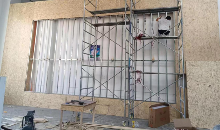 8月29日,伊旗云东惠民农贸市场提升改造工程进度及智慧电子屏组装。