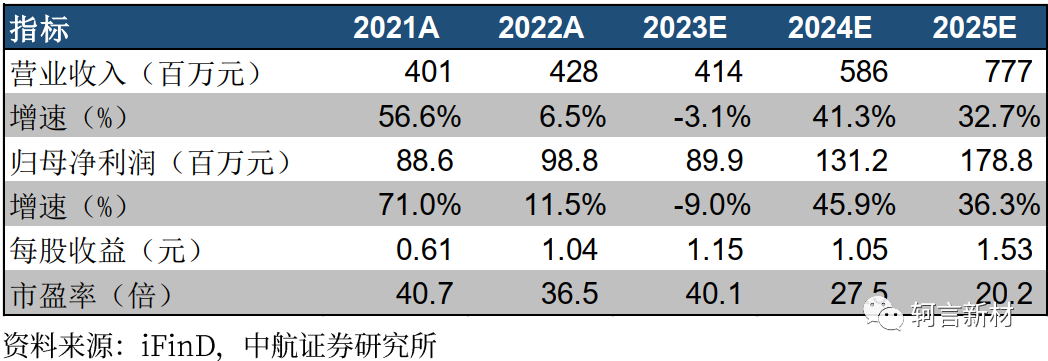 公司作为我国羰基铁粉龙头生产企业,低成本羰基铁生产工艺的革新有望为产品打开指数级别的增量市场空间,随着未来产品产能的扩建和市场应用空间的开拓,公司的高成长能力值得期待。我们预计公司2023-2025年分别实现营业收入4.14/ 5.86/ 7.77亿元,同比增长-3.1%/ 41.3%/ 32.7%,分别实现归母净利润0.90/ 1.31/ 1.79亿元,同比增长-9.0%/ 45.9%/ 36.3%,对应PE 40X/ 28X/ 20X。首次覆盖,给予“买入”评级。
