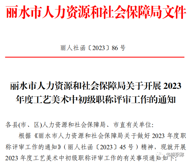 8月31日,丽水市工艺美术中级专业技术职务任职资格评审委员会发布《2023年度丽水市工艺美术中初级职称评审申报计划》,对2023年度丽水市工艺美术中初级职称资格评审事宜做出相关规定。