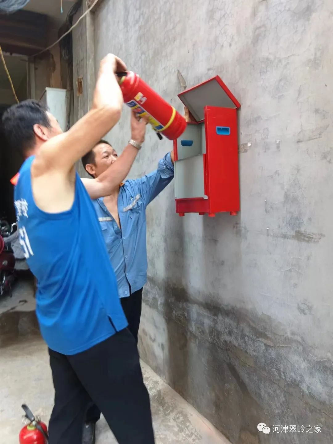 在今年“树标杆,强基础”专项行动开展以来,结合辖区存在公共消防设施配套不足等问题,8月28日翠岭社区联合包联单位河津市税务局安装消防器材,确保消防安全。