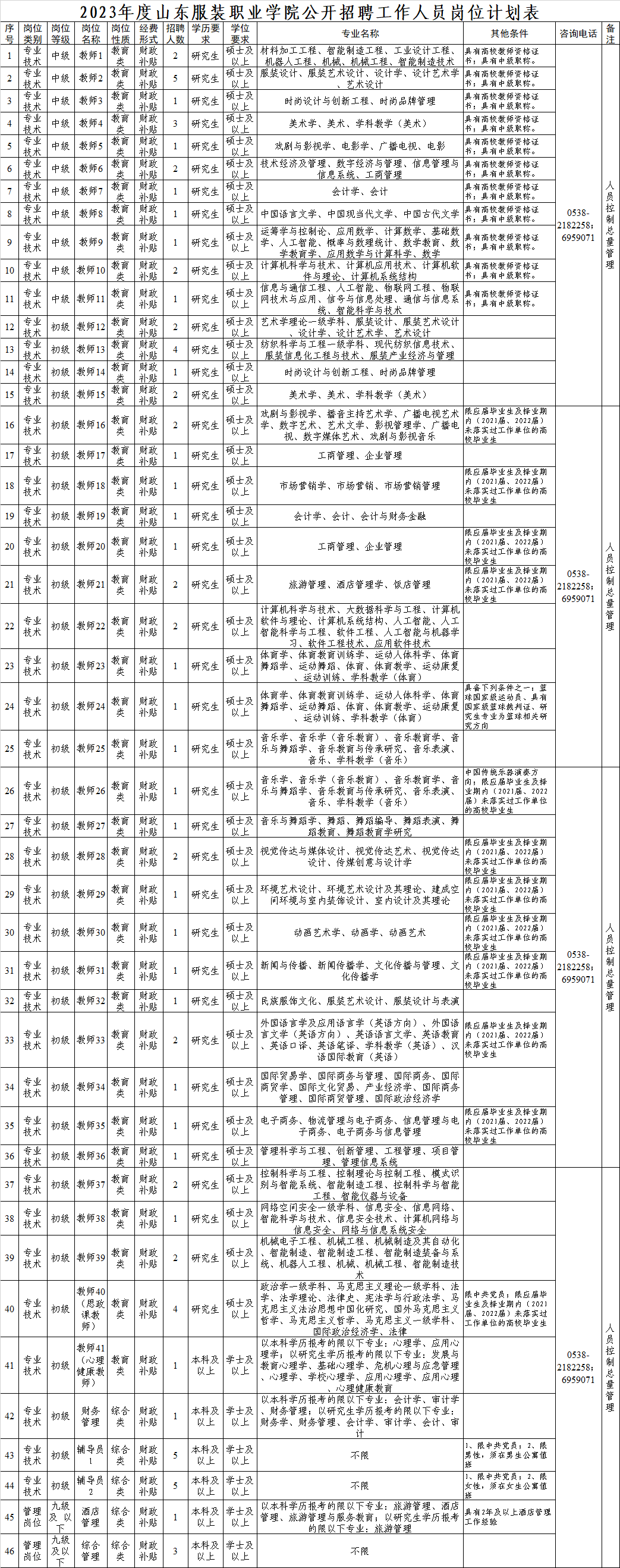 本次招聘计划80人,具体岗位要求、资格条件及各岗位招聘人数详见《2023年度山东服装职业学院公开招聘工作人员岗位计划表》(附件1)(以下简称《岗位计划表》)。