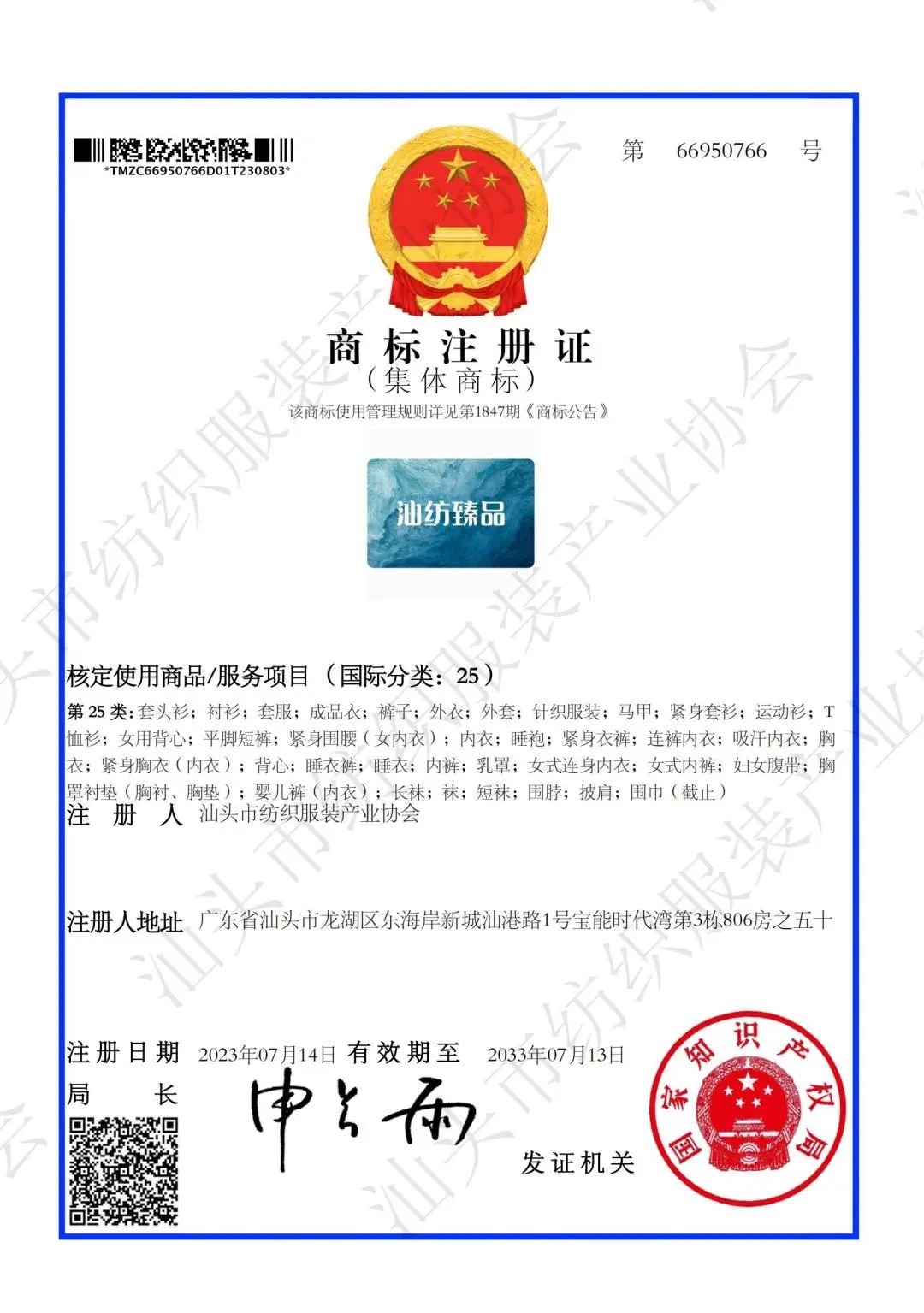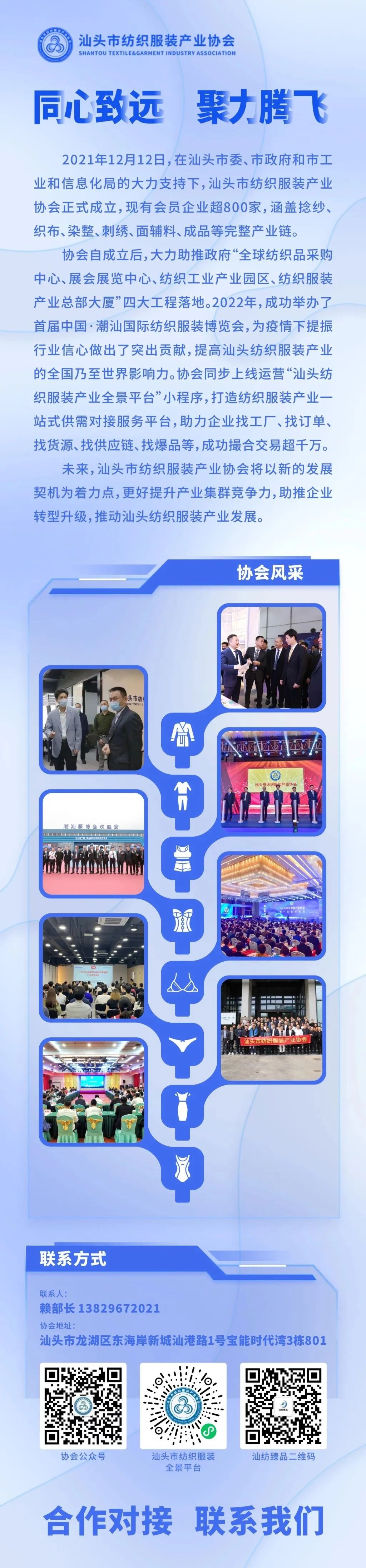 接下来,汕头市纺织服装产业协会将开展集体商标授权工作。着力把“汕纺臻品”打造成为汕头纺织面对全渠道推广产业名片。
