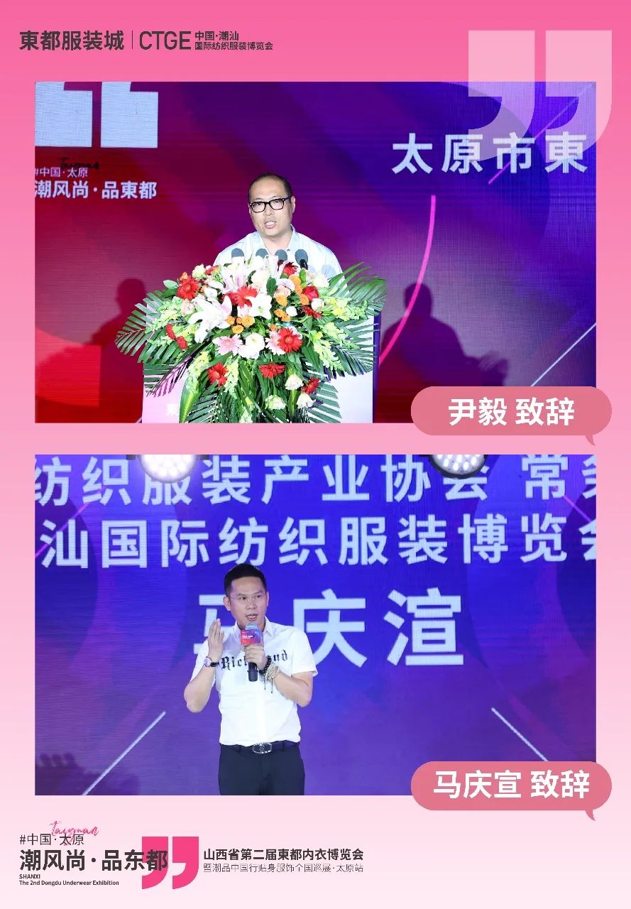 8月22日,潮品中国行·太原站在太原东都市场正式举行,太原市东都服装有限公司总经理尹毅、协会常务副会长马庆宣出席活动并致辞。理事单位华美时尚集团董事长周绪泽、当当畅销书《超级店长》作者刘铭,陈列共和营销总监范金腾等嘉宾以及数百名市场经销商代表参加活动。