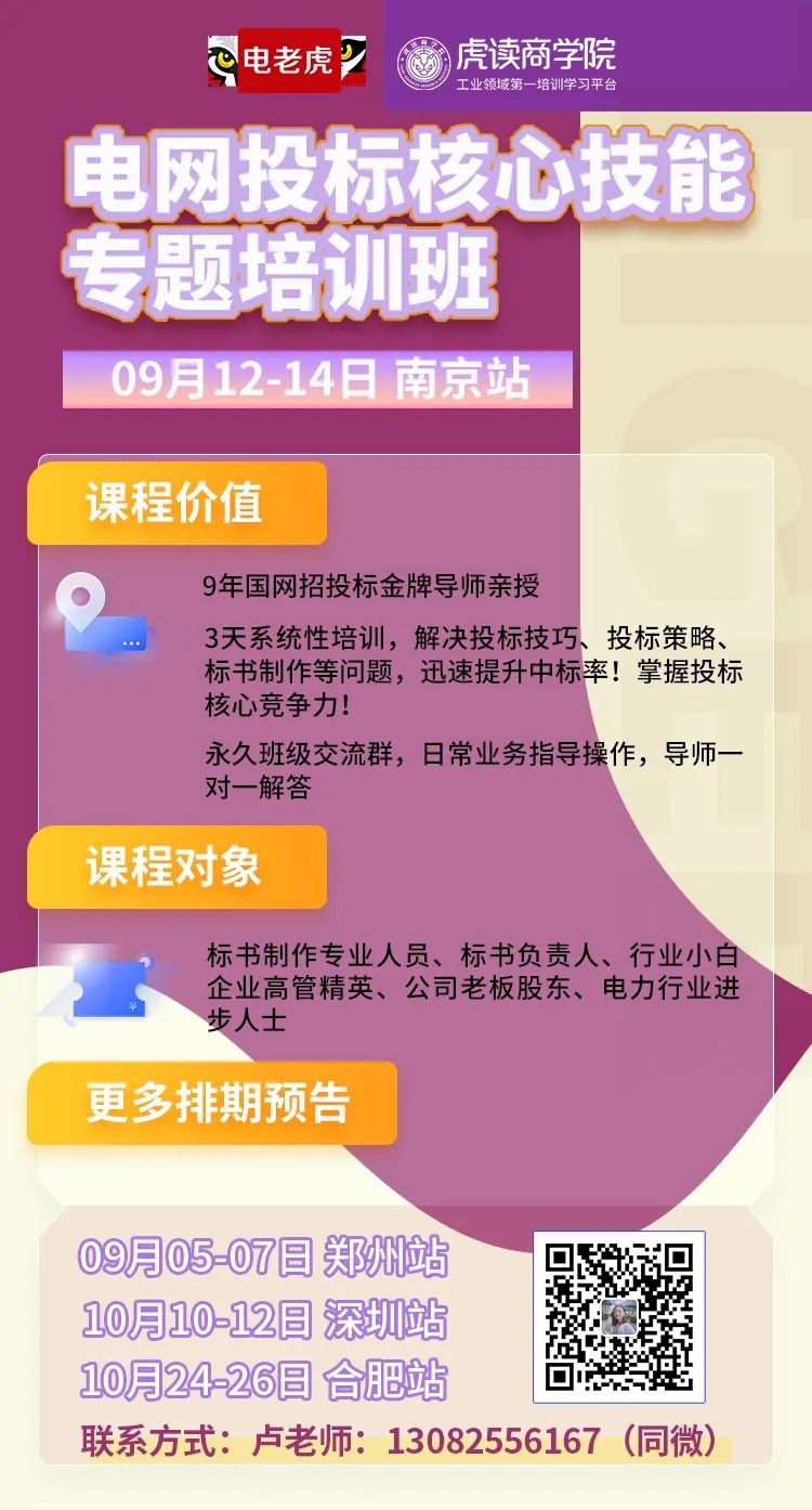 9月12日-14日,南京站《电网投标核心技能专题培训班》即将开课,小班制限定35人,报满即止!