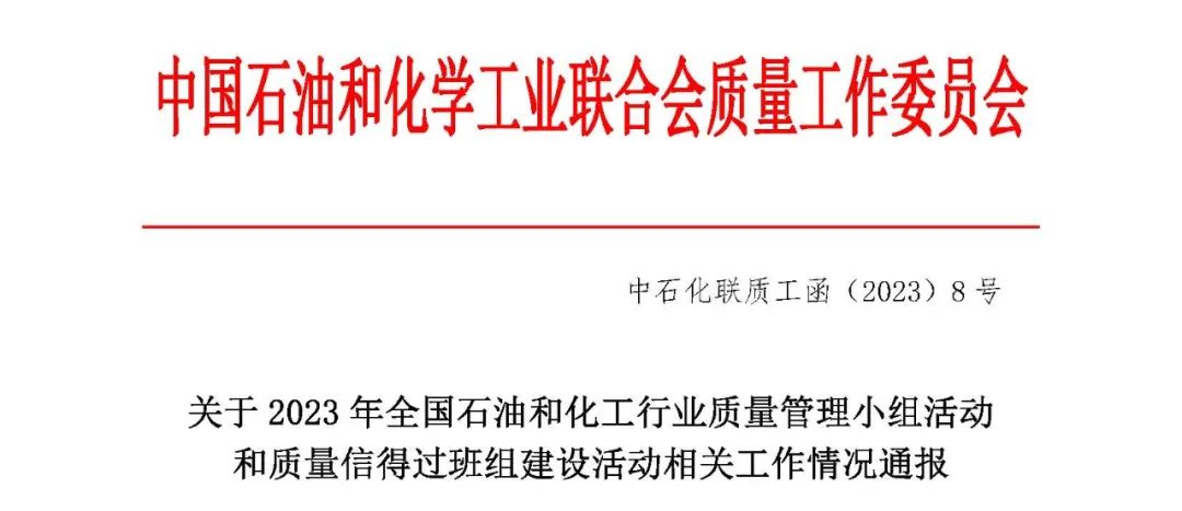 根据中国石油和化学工业联合会《关于做好2023年全国石油和化工行业群众性质量管理活动的通知》(中石化联质发(2023)43号)有关安排,我们组织完成了2023年全国石油和化工行业质量管理小组活动和质量信得过班组建设活动成果的登记备案、申报评审、发表交流和大会表彰等工作,现将有关情况通报如下:一、在有关地方行业协会、专业协会和大型集团公司的积极组织推动下,2023年申报共登记备案了5764个(其中质量管理小组4441个、质量信得过班组1323个)成果信息。成果申报截至时间2023年4月30日前,在分配申报名额的基础上,共收到申报单位推荐的412个成果(其中质量管理小组活动成果280个、质量信得过班组建设活动成果132个)材料。经形式审查,共有342个成果(其中质量管理小组活动成果231个、质量信得过班组建设活动成果111个)获得通过,进入材料评审。二、经2023年全国石油和化工行业质量管理小组活动和质量信得过班组建设活动成果评审委员会对通过形式审查的成果进行评审,石化联合会质量工作委员会审定和石化联合会同意,共有273个成果(其中质量管理小组活动成果184个、质量信得过班组建设活动成果89个)被确定为2023年全国石油和化工行业优秀质量管理成果。三、2023年8月15-18日,在内蒙古乌兰察布市顺利召开第四十二次全国石油和化工行业质量管理小组代表大会。 1、出席大会的有地方行业协会、专业协会、大型企业集团(中石油、中石化、中海油、中国化学、延长石油、渤化集团等)等组织推荐单位代表,荣获2022-2023年度全国石油和化工行业优秀质量管理成果的单位代表,行业优秀成果评审委员会委员及工作人员等共计300余人,中国石油和化学工业联合会副会长周竹叶出席会议并作闭幕式讲话。2、经有关地方行业协会、专业协会和大型企业集团推荐,石化联合会质量工作委员会组织的专家评审,本次大会共安排了75个质量管理小组活动优秀成果和50个质量信得过班组建设活动优秀成果进行现场发表,交流、分享了活动成果和典型经验。3、经过大会发表评审和大众网络投票,共有20个质量管理小组、10个质量信得过班组获得本次大会优秀成果发表“优胜杯”,名单见附件1。4、大会邀请了中国石油天然气集团有限公司、中国海洋石油集团有限公司两家单位分别作了组织推进质量管理小组活动的典型经验交流。还特意邀请了中国标准化研究院质量管理分院王立志副院长专题解读了《质量强国建设纲要》。5、大会隆重表彰了2022-2023年度全国石油和化工行业优秀质量管理成果541项,其中,质量管理小组活动成果388项,质量信得过班组建设活动成果153项,优秀成果名册见附件2。(注:每家企业申报成果评审情况,另行通知反馈)6、中国石油和化学工业联合会周竹叶副会长作闭幕式讲话(见附件3),回顾了一年来全国石油和化工行业质量管理小组活动和质量信得过班组建设情况,并对今后工作提出了相关建议。7、会议采用了线下会场为主和线上网络直播相结合的形式,同时,还举办了“我最喜爱的发表小组”和“我最喜爱的发表班组”大众网络投票活动,参与网络投票9.3万人次,其中中国化学试剂工业协会、中石油兰州石化、中石油独山子石化、中石油宁夏石化、中石油抚顺石化、中海浙江宁波液化天然气、中国蓝星、中国化学七化建、中国化学十四化建、中化学南方建设投资、延长中煤榆能化、延长石油油田气化工科技公司、新疆天业、新疆中泰矿冶、新疆圣雄电石、四川天华、云天化红磷化工、云天化天安化工、河南心连心、天津大沽化、江苏瑞祥化工等众多单位,还在线下积极组织员工观看大会直播视频进行了观摩学习。在此,对各单位给予全国石油和化工行业质量管理小组活动和质量信得过班组建设活动以及第四十二次全国石油和化工行业质量管理小组代表大会的大力支持一并表示衷心的感谢。1、第四十二次全国石油和化工行业质量管理小组代表大会质量管理小组活动、质量信得过班组建设活动优秀成果发表“优胜杯”获奖小组和班组名单2、2022-2023年度全国石油和化工行业优秀质量管理成果和质量奖名册3、中国石油和化学工业联合会周竹叶副会长在第四十二次全国石油和化工行业质量管理小组代表大会闭幕式上的讲话中国石油和化学工业联合会
