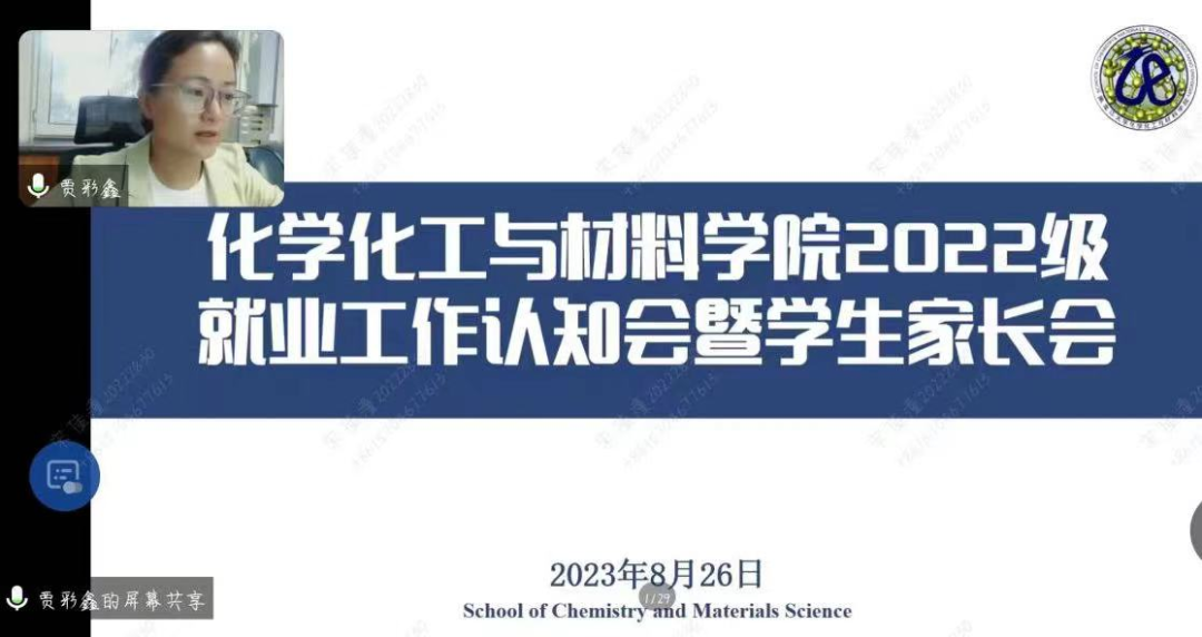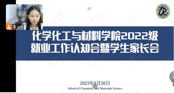 为进一步畅通家校联络通道,推动家校协调育人工作发挥实效,全方位服务学生成长成才,化学化工与材料学院于2023年8月26日18:00在腾讯会议组织召开2022级就业工作认知会暨学生家长会。本次会议由2022级辅导员王欣主持,特别邀请学院党委副书记贾彩鑫担任主讲,2022级学生家长及全体同学共同参会。