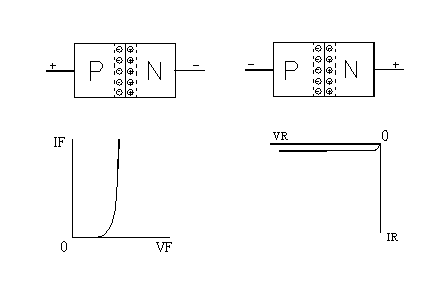 在正向偏置下(P区接正极,N区接负极),此时,外加电场与自建电场的方向相反,因此,当外加电场大于自建电场以后,P-N结内的载流子产生定向而连续的流动(N区的电子流向P区,P区的空穴流向N区),形成电流。而且,这种电流随着外加电压的增加很快增大,形成很大的正向电流。——这就叫P-N结的正向特性。